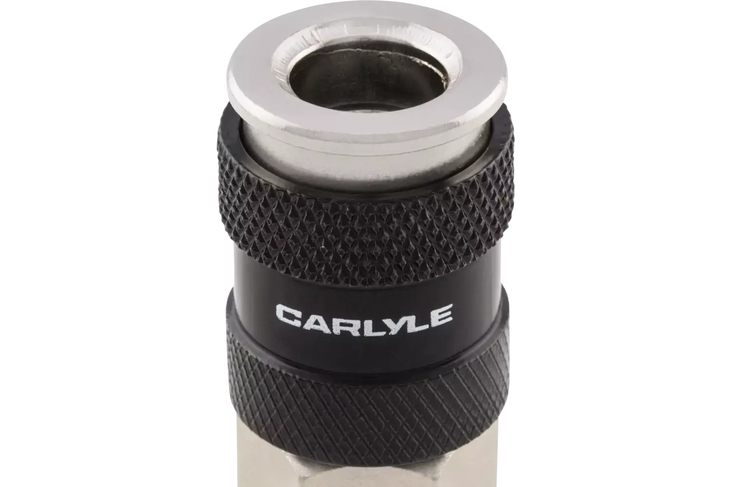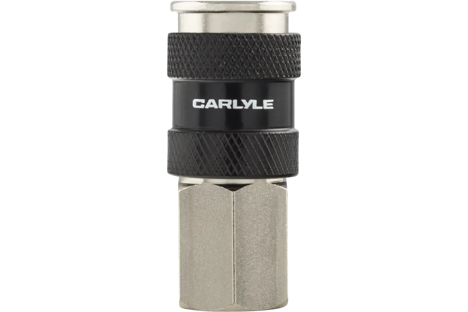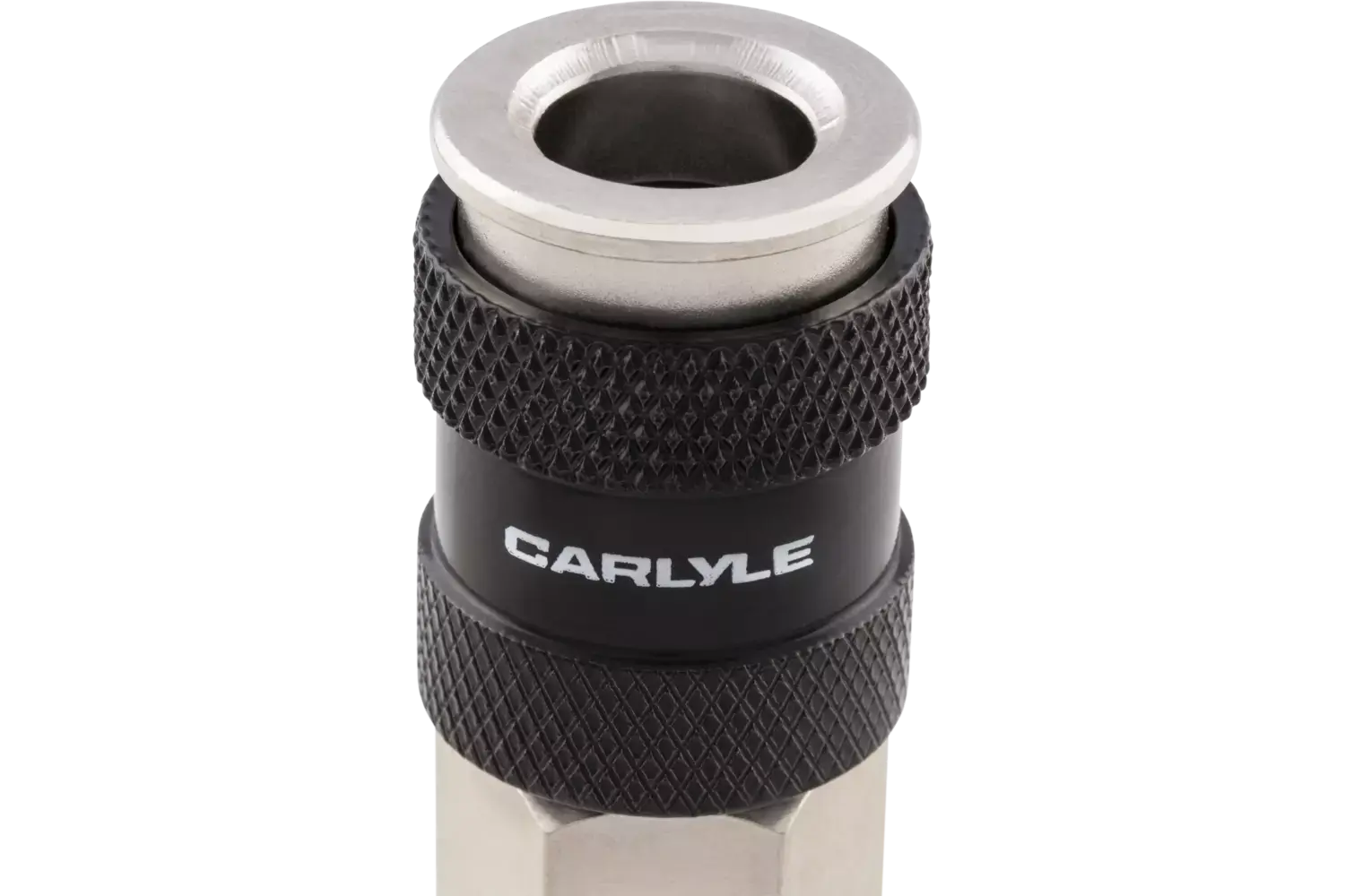 The Carlyle High Flow Coupler is built for pros who demand maximum performance from their air tools. Designed for high CFM air tools, this 1/4-inch body coupler with 1/4-inch FNPT delivers two times more air than standard couplers and plugs, making it a must-have for tools that rely on high air output. With a flow rate exceeding 80 SCFM, it delivers uncompromising power for demanding tasks. The push-to-connect design allows for quick, single-handed operation, saving time and effort on the job. Available in 1/4-inch FNPT, 1/4-inch MNPT, 3/8-inch FNPT, and 3/8-inch MNPT configurations, this coupler offers heavy-duty functionality to match the toughest applications while maximizing airflow and efficiency.