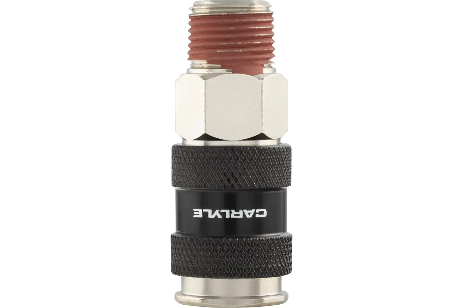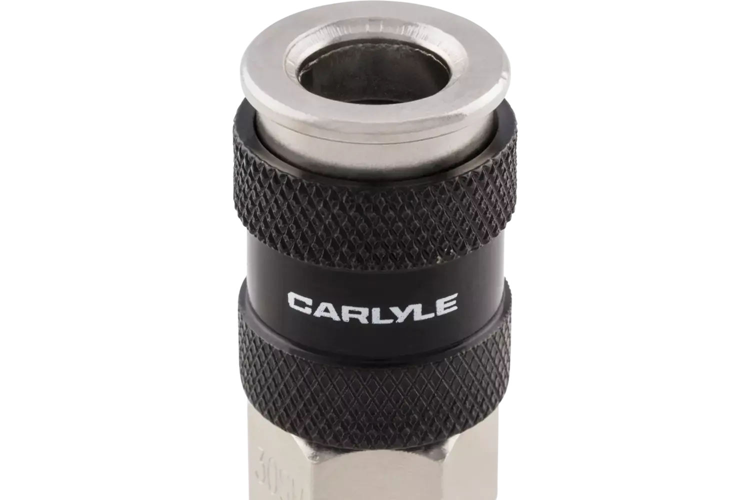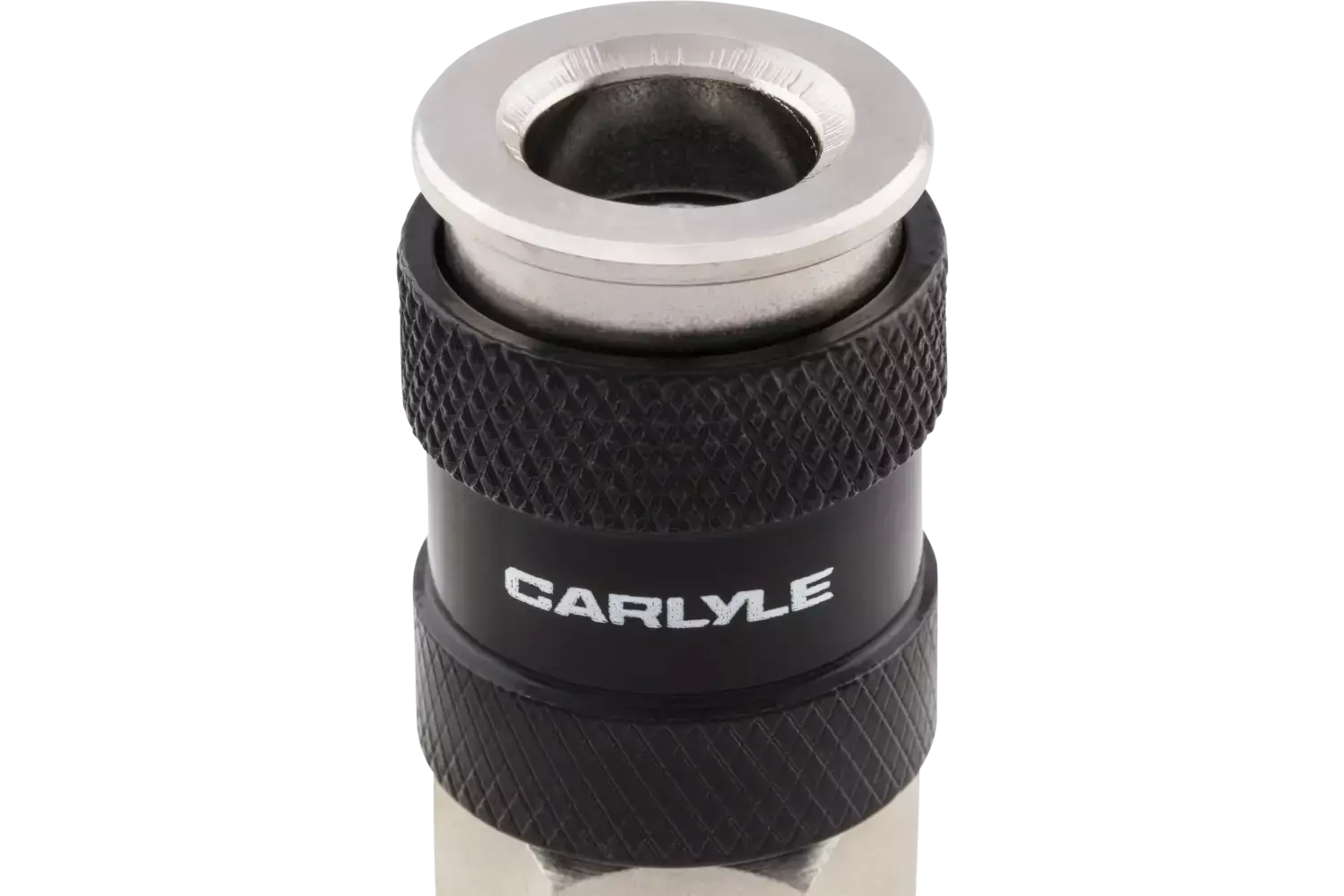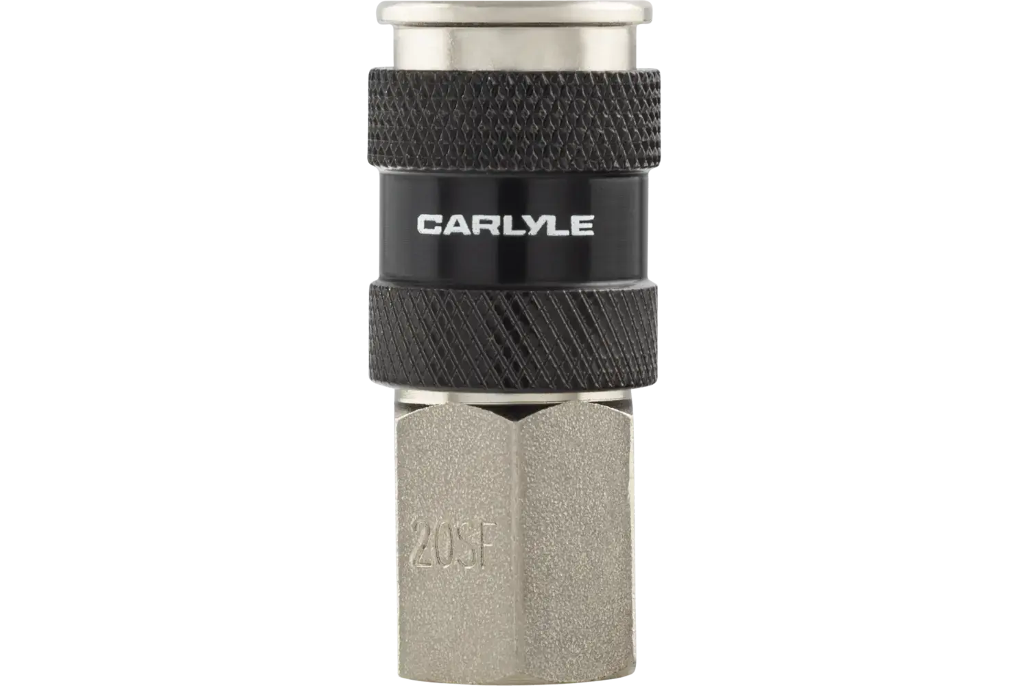 The Carlyle High Flow Coupler is built for pros who demand maximum performance from their air tools. Designed for high CFM air tools, this 1/4-inch body coupler with 1/4-inch FNPT delivers two times more air than standard couplers and plugs, making it a must-have for tools that rely on high air output. With a flow rate exceeding 80 SCFM, it delivers uncompromising power for demanding tasks. The push-to-connect design allows for quick, single-handed operation, saving time and effort on the job. Available in 1/4-inch FNPT, 1/4-inch MNPT, 3/8-inch FNPT, and 3/8-inch MNPT configurations, this coupler offers heavy-duty functionality to match the toughest applications while maximizing airflow and efficiency.