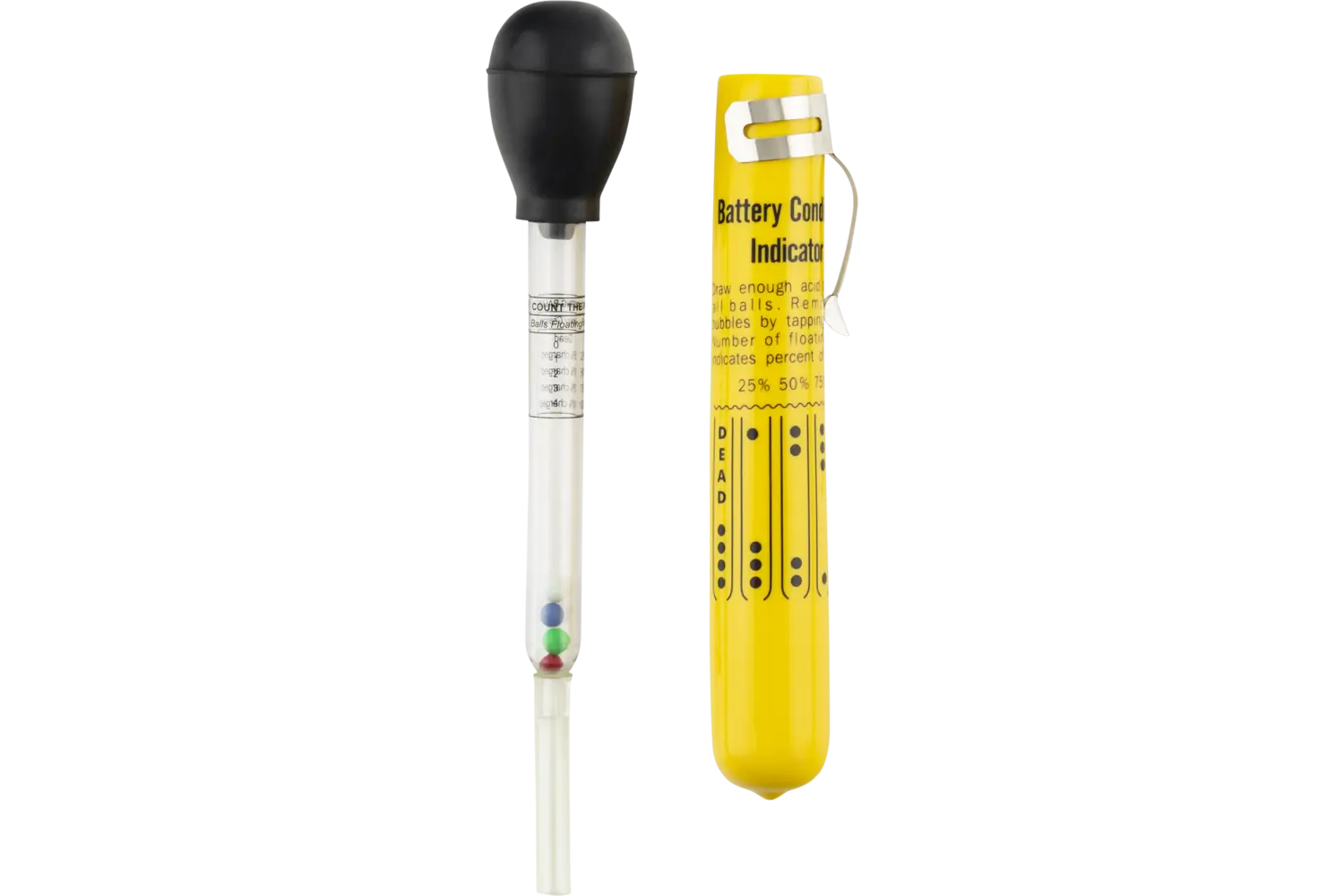 Built for durability and precision, the Carlyle Handheld Battery Tester is a tough, versatile tool designed to handle any battery-testing job with ease. Whether you choose the compact tester with its heavy-duty plastic case, temperature compensation for instant, accurate readings in any condition, and no fragile parts to break, or the pocket clip version with its long draw tube for reaching low fluid levels and a convenient clip to prevent spills, each option is built for rugged performance. The disc-type tester uses a load mechanism to simulate real-world conditions, with specific gravity levels printed on a tough, see-through plastic body for increased visibility. For quick, easy readings, the 3-color float tester features acid-resistant rubber components and small glass beads to prevent sticking, providing accurate results every time. From cars and trucks to marine and farm equipment, this lineup of handheld testers delivers reliable performance for pros and DIYers alike.