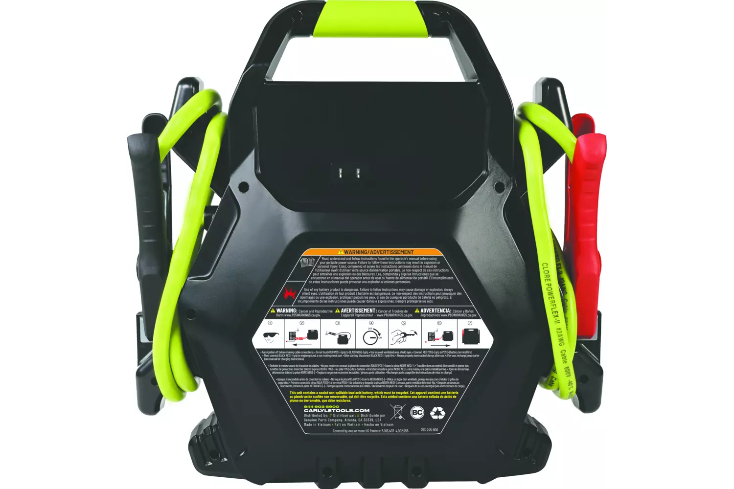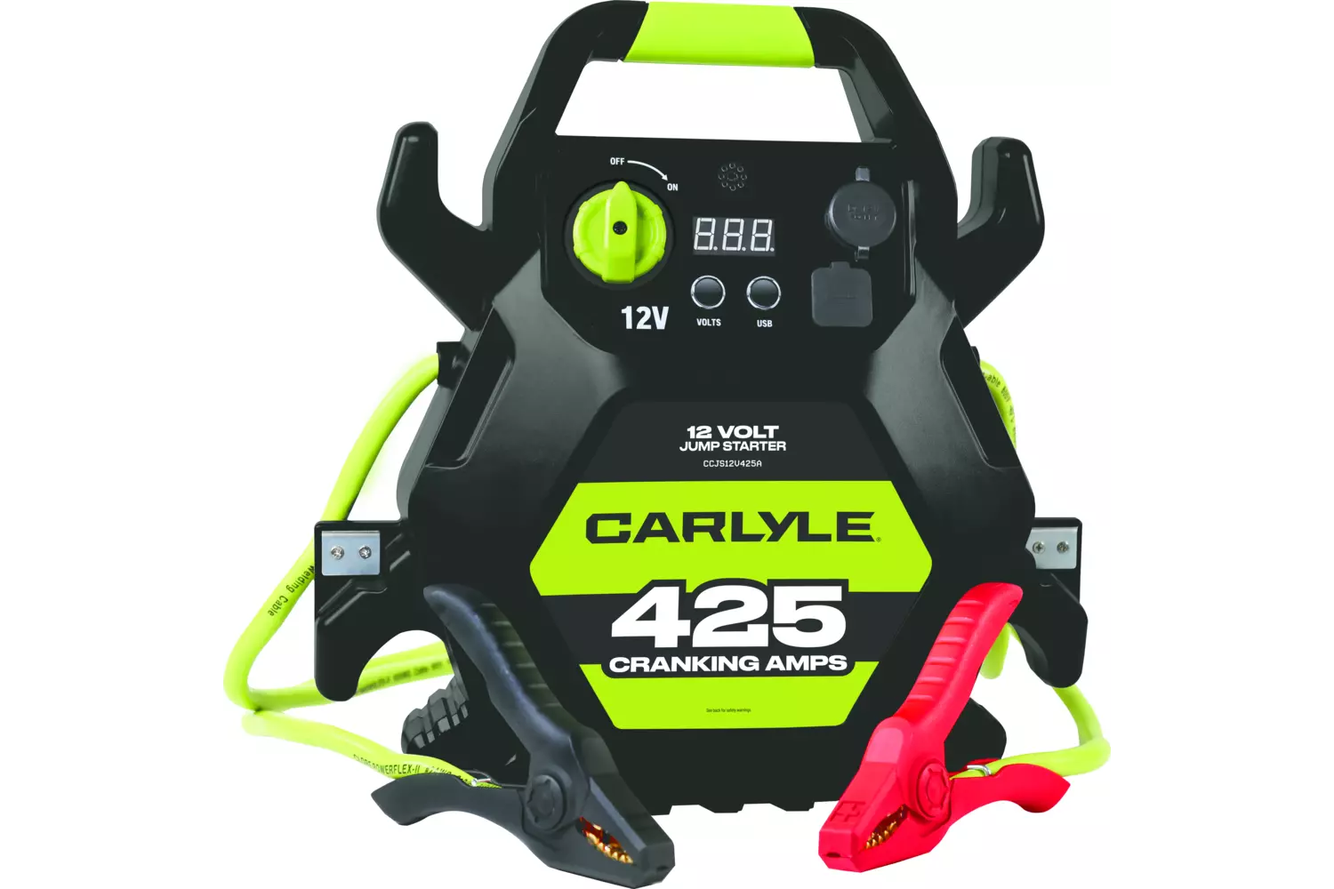 The Carlyle Jump Starter is built tough for pros and DIYers who need reliable power on demand. Featuring a Clore PROFORMER battery specifically designed for vehicle jump-starting, it delivers high output, extended cranking, and long-lasting performance to start almost any passenger vehicle. The master ON/OFF switch adds a layer of safety during storage and transport, while the built-in automatic charger offers maximum convenience—just plug in a standard extension cord to recharge. Heavy-duty, flexible cables make it easy to connect to various vehicle types, and USB-A and USB-C outlets allow for charging small electronics on the go. Available in 12V or 12V/24V models, this jump starter is rugged, versatile, and ready for action when you are.