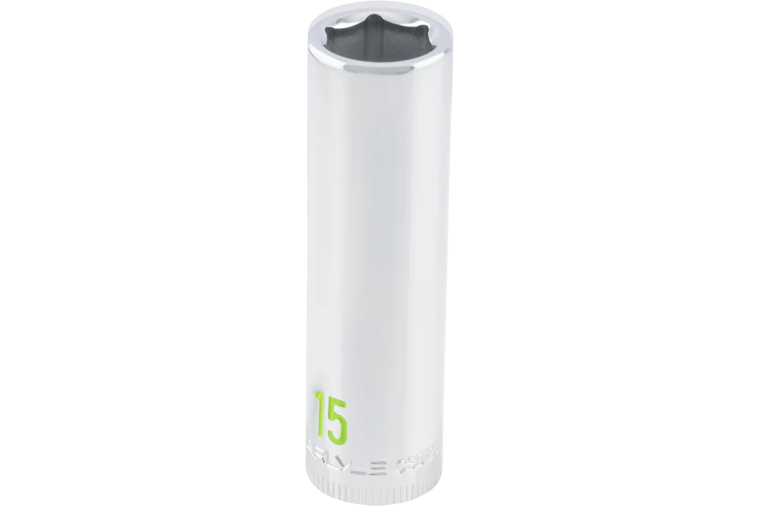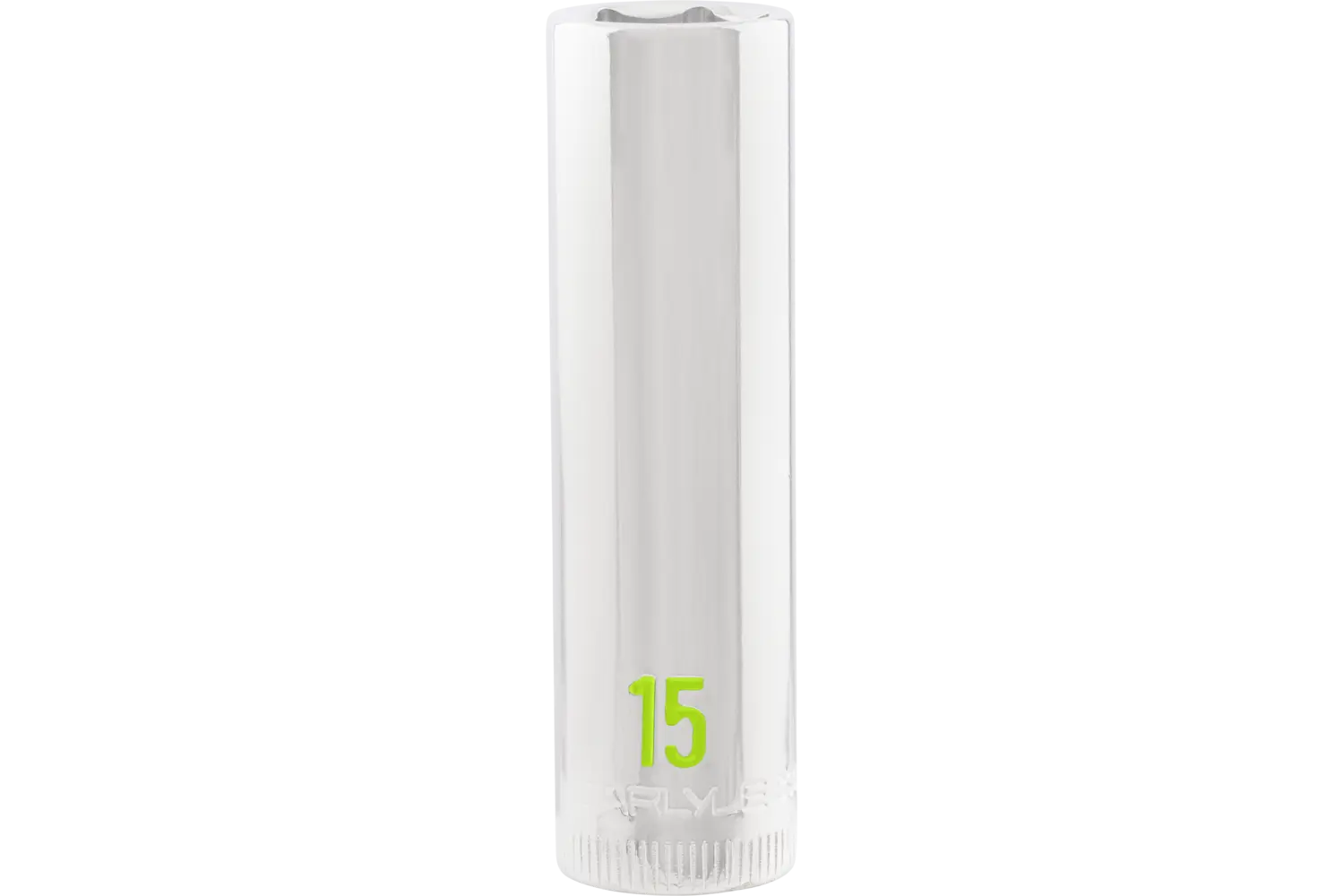 Revamp your toolbox with Carlyle 1/2 in. Drive Deep Chrome Sockets - Metric, designed for those who crave both functionality and flair. Choose between the precision of a 6-point or the versatility of a 12-point design, both engineered to reduce bolt and nut wear while enhancing grip for a flawless performance every time. The full polish chrome finish not only delivers a sleek, eye-catching look but also provides exceptional rust resistance, keeping your tools looking fresh and ready for action. With deep-rolled stamped vertical knurling, identifying the right socket is a breeze, even in the most cluttered toolbox. Available in a wide variety of sizes, these sockets are your go-to for any project, big or small. Get ready to work smarter and shine brighter!