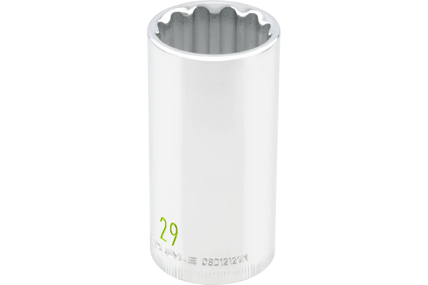 Revamp your toolbox with Carlyle 1/2 in. Drive Deep Chrome Sockets - Metric, designed for those who crave both functionality and flair. Choose between the precision of a 6-point or the versatility of a 12-point design, both engineered to reduce bolt and nut wear while enhancing grip for a flawless performance every time. The full polish chrome finish not only delivers a sleek, eye-catching look but also provides exceptional rust resistance, keeping your tools looking fresh and ready for action. With deep-rolled stamped vertical knurling, identifying the right socket is a breeze, even in the most cluttered toolbox. Available in a wide variety of sizes, these sockets are your go-to for any project, big or small. Get ready to work smarter and shine brighter!