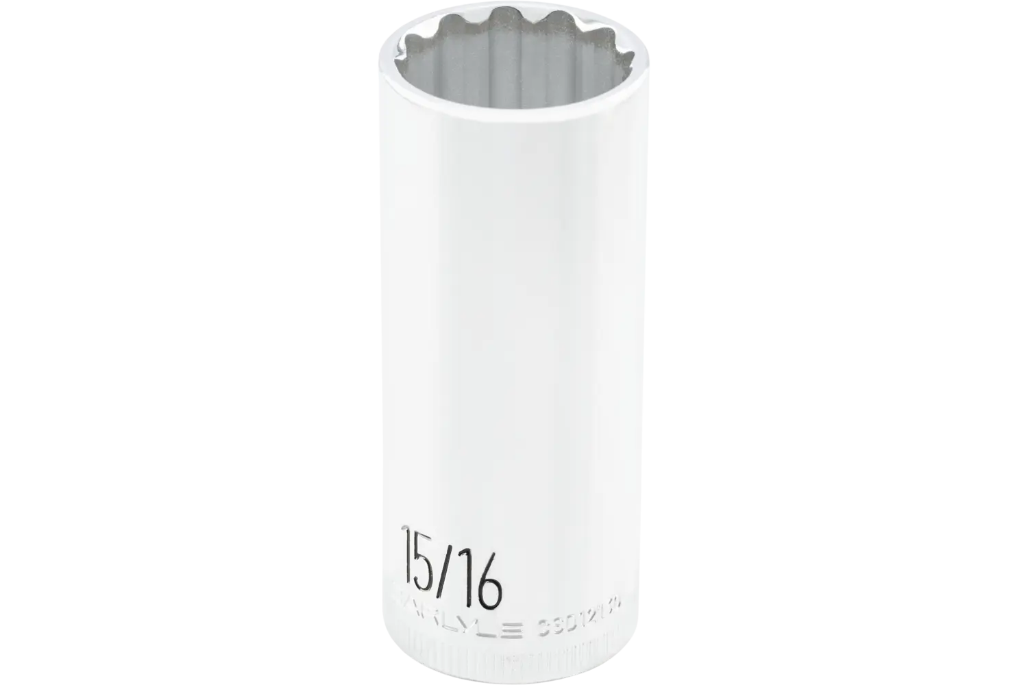 Revamp your toolbox with Carlyle 1/2 in. Drive Deep Chrome Sockets - Metric, designed for those who crave both functionality and flair. Choose between the precision of a 6-point or the versatility of a 12-point design, both engineered to reduce bolt and nut wear while enhancing grip for a flawless performance every time. The full polish chrome finish not only delivers a sleek, eye-catching look but also provides exceptional rust resistance, keeping your tools looking fresh and ready for action. With deep-rolled stamped vertical knurling, identifying the right socket is a breeze, even in the most cluttered toolbox. Available in a wide variety of sizes, these sockets are your go-to for any project, big or small. Get ready to work smarter and shine brighter!