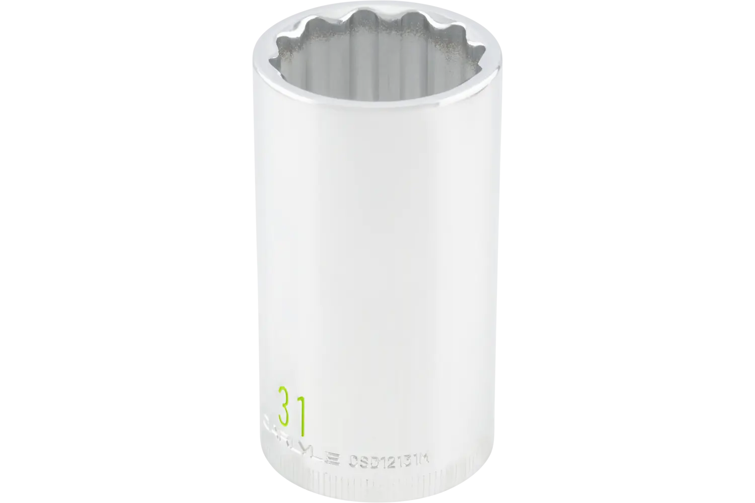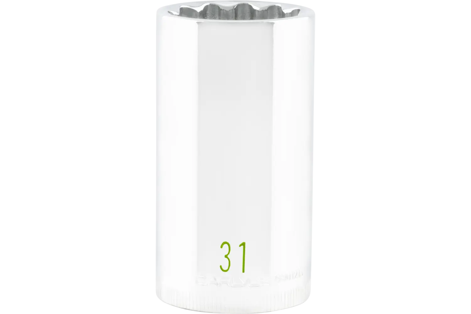 Revamp your toolbox with Carlyle 1/2 in. Drive Deep Chrome Sockets - Metric, designed for those who crave both functionality and flair. Choose between the precision of a 6-point or the versatility of a 12-point design, both engineered to reduce bolt and nut wear while enhancing grip for a flawless performance every time. The full polish chrome finish not only delivers a sleek, eye-catching look but also provides exceptional rust resistance, keeping your tools looking fresh and ready for action. With deep-rolled stamped vertical knurling, identifying the right socket is a breeze, even in the most cluttered toolbox. Available in a wide variety of sizes, these sockets are your go-to for any project, big or small. Get ready to work smarter and shine brighter!