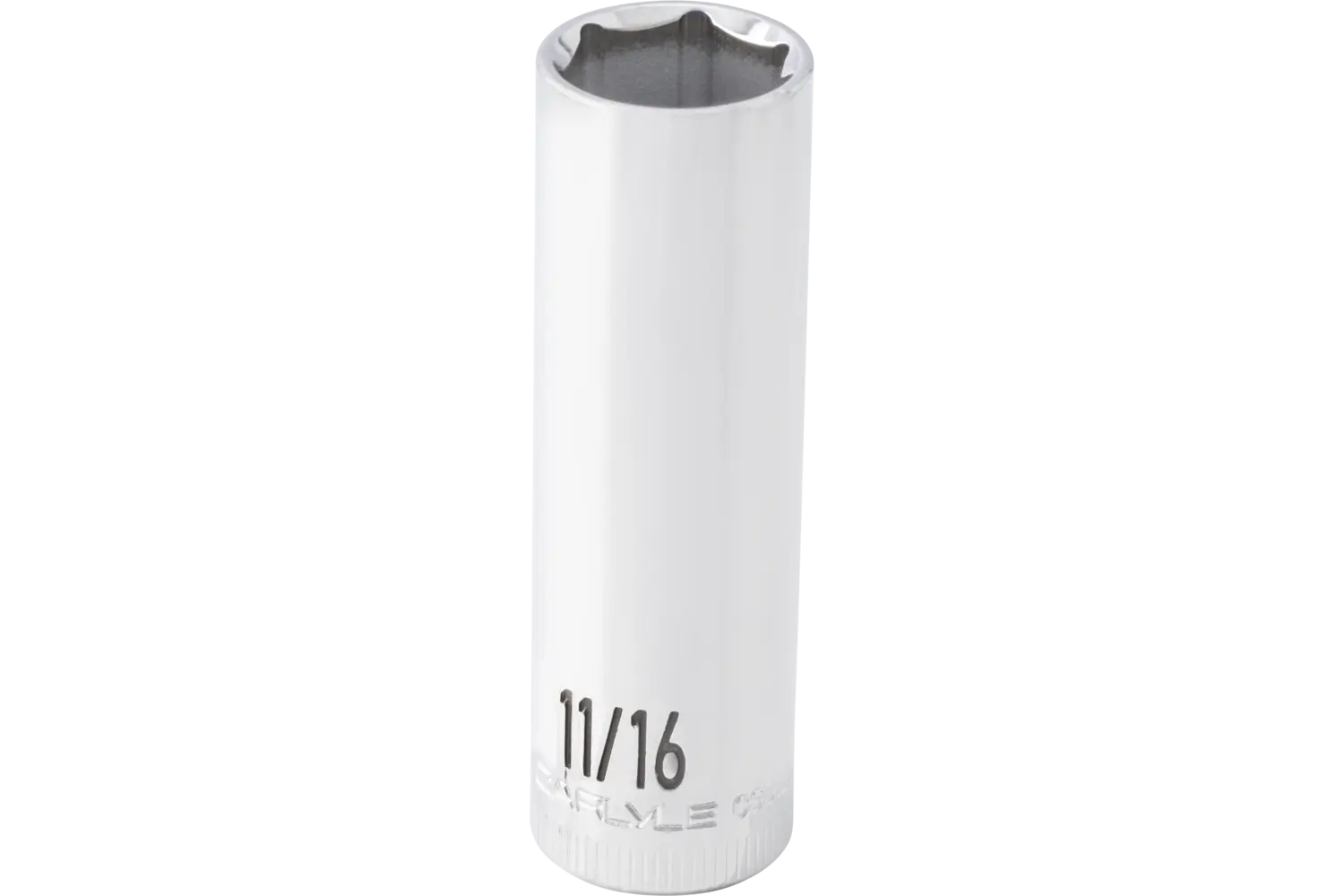 Upgrade your tool collection with Carlyle 1/2 in. Drive Deep Chrome Sockets - SAE, crafted for those who demand both style and substance. Whether you opt for the precision of a 6-point or the flexibility of a 12-point design, these sockets are engineered to minimize bolt and nut wear while maximizing grip, providing every turn is smooth and secure. The full polish chrome finish not only adds a sleek, modern touch but also offers top-notch rust resistance, keeping your tools in prime condition. Thanks to deep-rolled stamped vertical knurling, spotting the right socket is effortless, even in a toolbox full of contenders. Available in a broad range of sizes, these sockets are ready to tackle any task you encounter. Elevate your work, and let your tools do the talking!