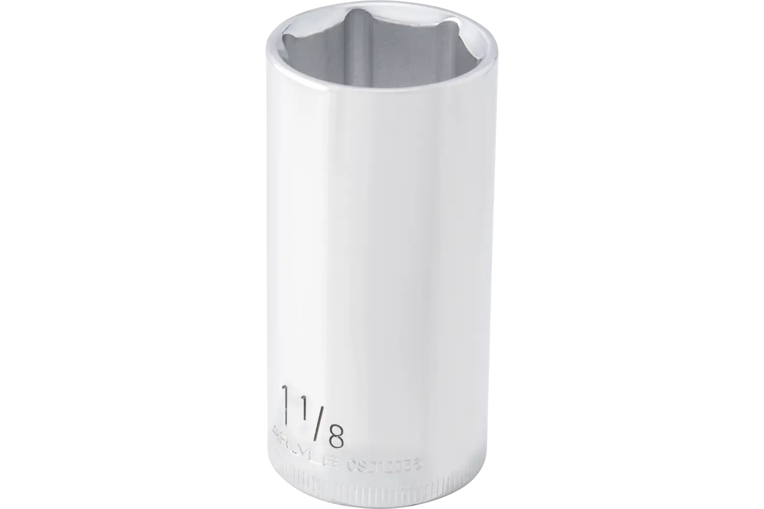 Upgrade your tool collection with Carlyle 1/2 in. Drive Deep Chrome Sockets - SAE, crafted for those who demand both style and substance. Whether you opt for the precision of a 6-point or the flexibility of a 12-point design, these sockets are engineered to minimize bolt and nut wear while maximizing grip, providing every turn is smooth and secure. The full polish chrome finish not only adds a sleek, modern touch but also offers top-notch rust resistance, keeping your tools in prime condition. Thanks to deep-rolled stamped vertical knurling, spotting the right socket is effortless, even in a toolbox full of contenders. Available in a broad range of sizes, these sockets are ready to tackle any task you encounter. Elevate your work, and let your tools do the talking!
