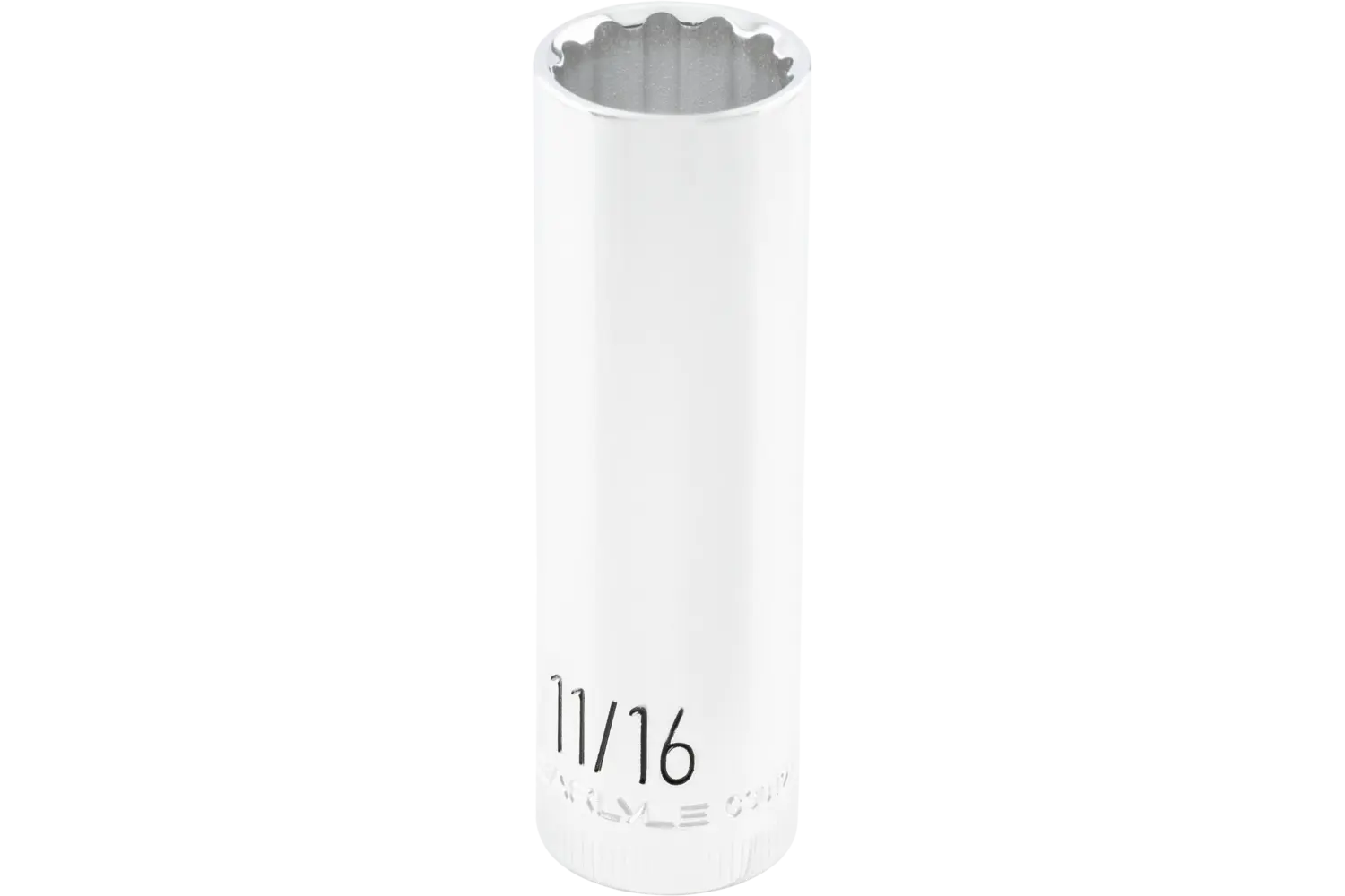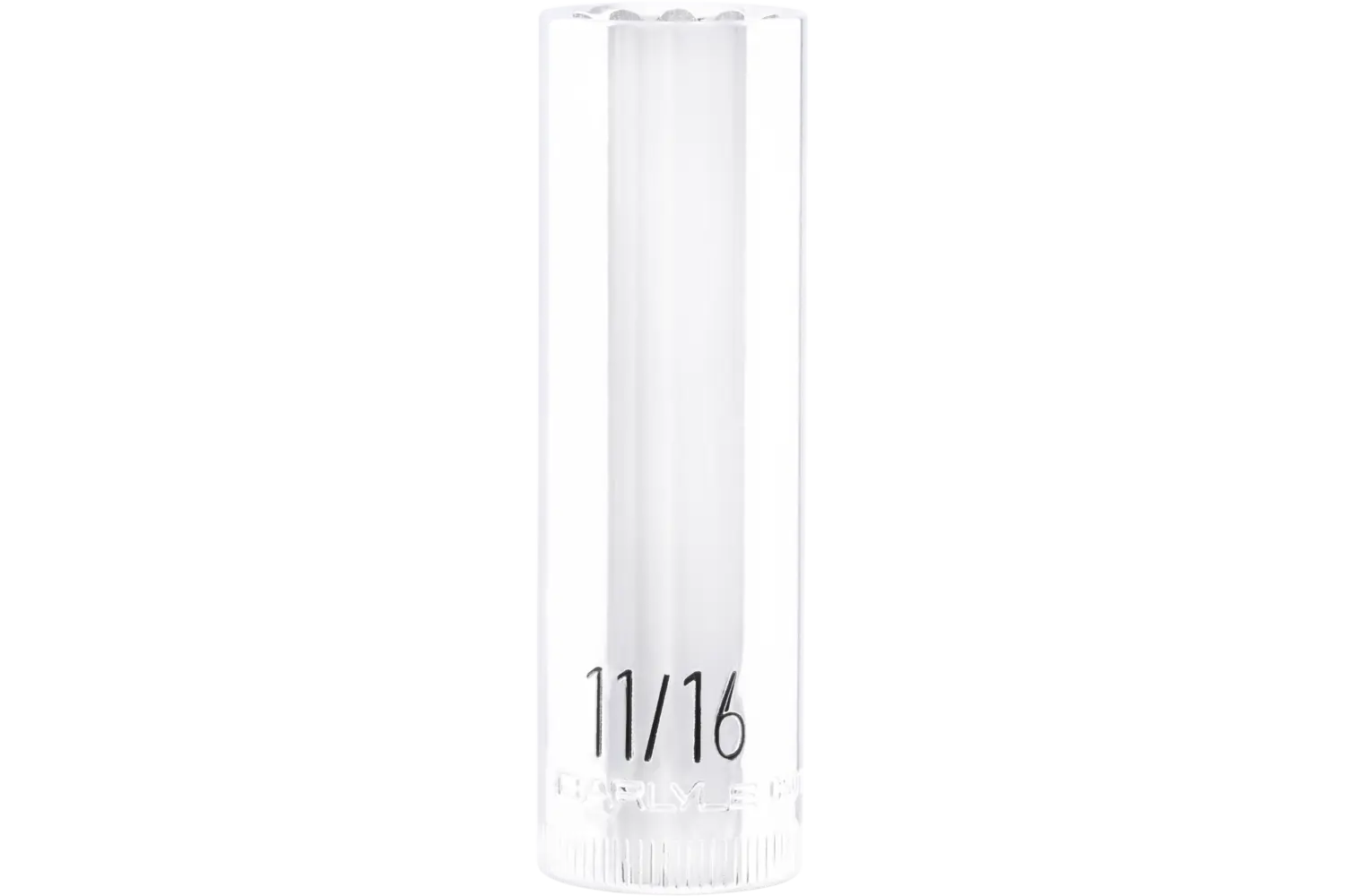 Upgrade your tool collection with Carlyle 1/2 in. Drive Deep Chrome Sockets - SAE, crafted for those who demand both style and substance. Whether you opt for the precision of a 6-point or the flexibility of a 12-point design, these sockets are engineered to minimize bolt and nut wear while maximizing grip, providing every turn is smooth and secure. The full polish chrome finish not only adds a sleek, modern touch but also offers top-notch rust resistance, keeping your tools in prime condition. Thanks to deep-rolled stamped vertical knurling, spotting the right socket is effortless, even in a toolbox full of contenders. Available in a broad range of sizes, these sockets are ready to tackle any task you encounter. Elevate your work, and let your tools do the talking!