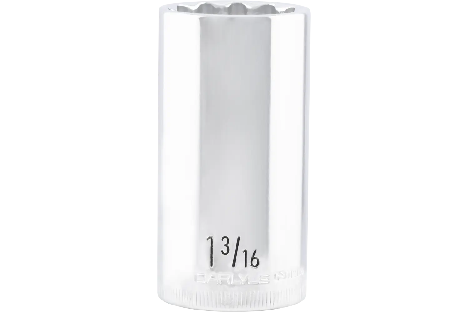 Upgrade your tool collection with Carlyle 1/2 in. Drive Deep Chrome Sockets - SAE, crafted for those who demand both style and substance. Whether you opt for the precision of a 6-point or the flexibility of a 12-point design, these sockets are engineered to minimize bolt and nut wear while maximizing grip, providing every turn is smooth and secure. The full polish chrome finish not only adds a sleek, modern touch but also offers top-notch rust resistance, keeping your tools in prime condition. Thanks to deep-rolled stamped vertical knurling, spotting the right socket is effortless, even in a toolbox full of contenders. Available in a broad range of sizes, these sockets are ready to tackle any task you encounter. Elevate your work, and let your tools do the talking!