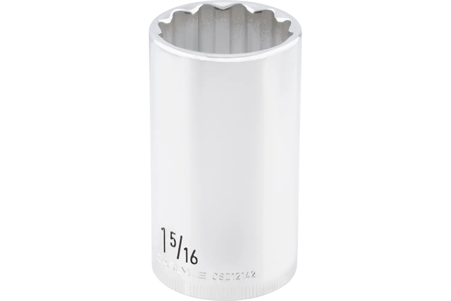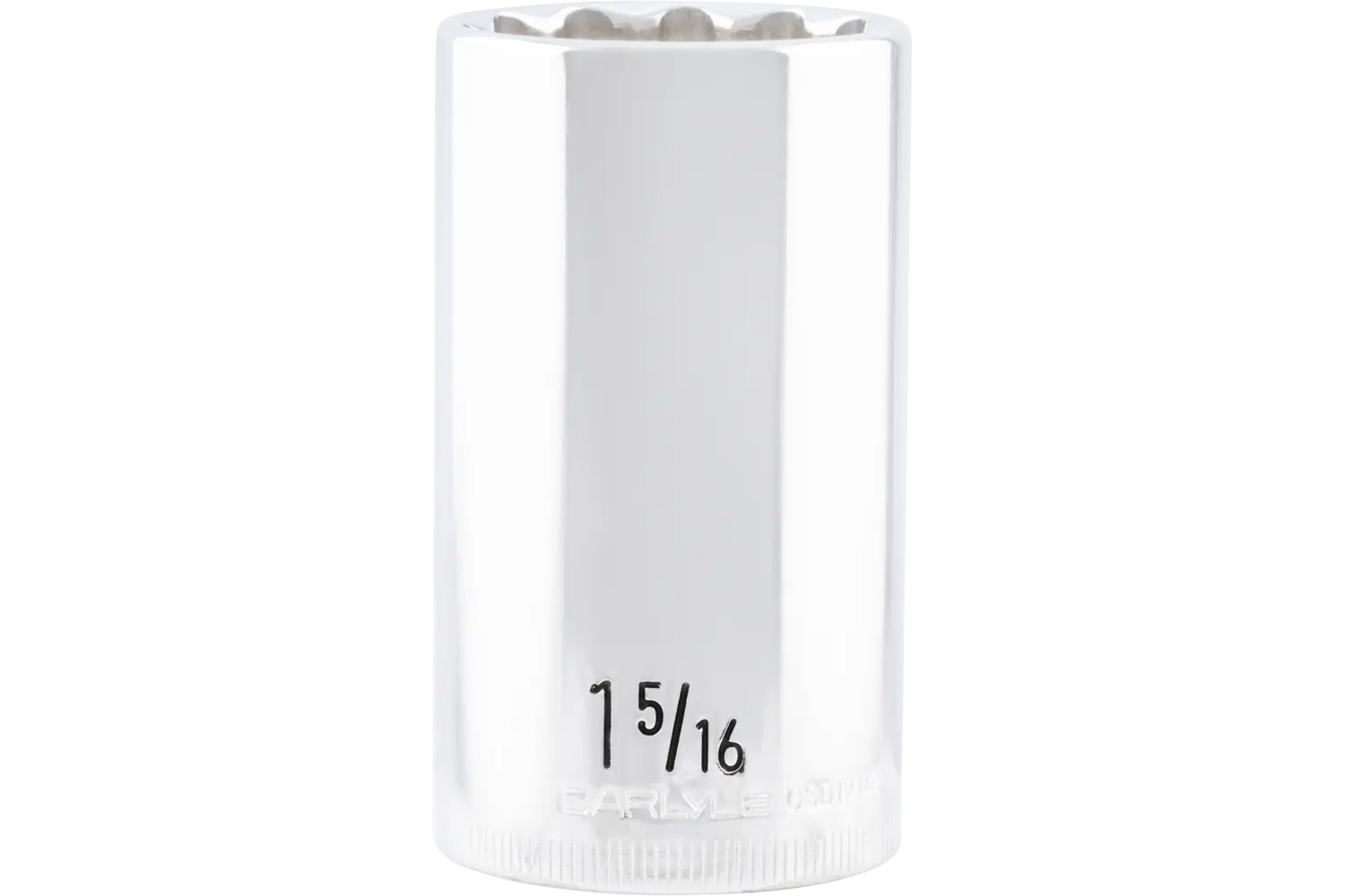 Upgrade your tool collection with Carlyle 1/2 in. Drive Deep Chrome Sockets - SAE, crafted for those who demand both style and substance. Whether you opt for the precision of a 6-point or the flexibility of a 12-point design, these sockets are engineered to minimize bolt and nut wear while maximizing grip, providing every turn is smooth and secure. The full polish chrome finish not only adds a sleek, modern touch but also offers top-notch rust resistance, keeping your tools in prime condition. Thanks to deep-rolled stamped vertical knurling, spotting the right socket is effortless, even in a toolbox full of contenders. Available in a broad range of sizes, these sockets are ready to tackle any task you encounter. Elevate your work, and let your tools do the talking!