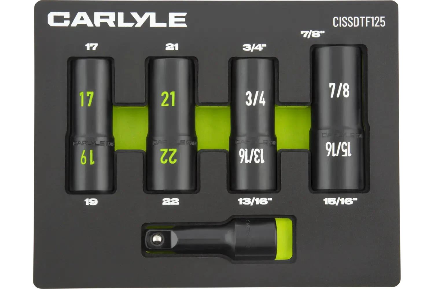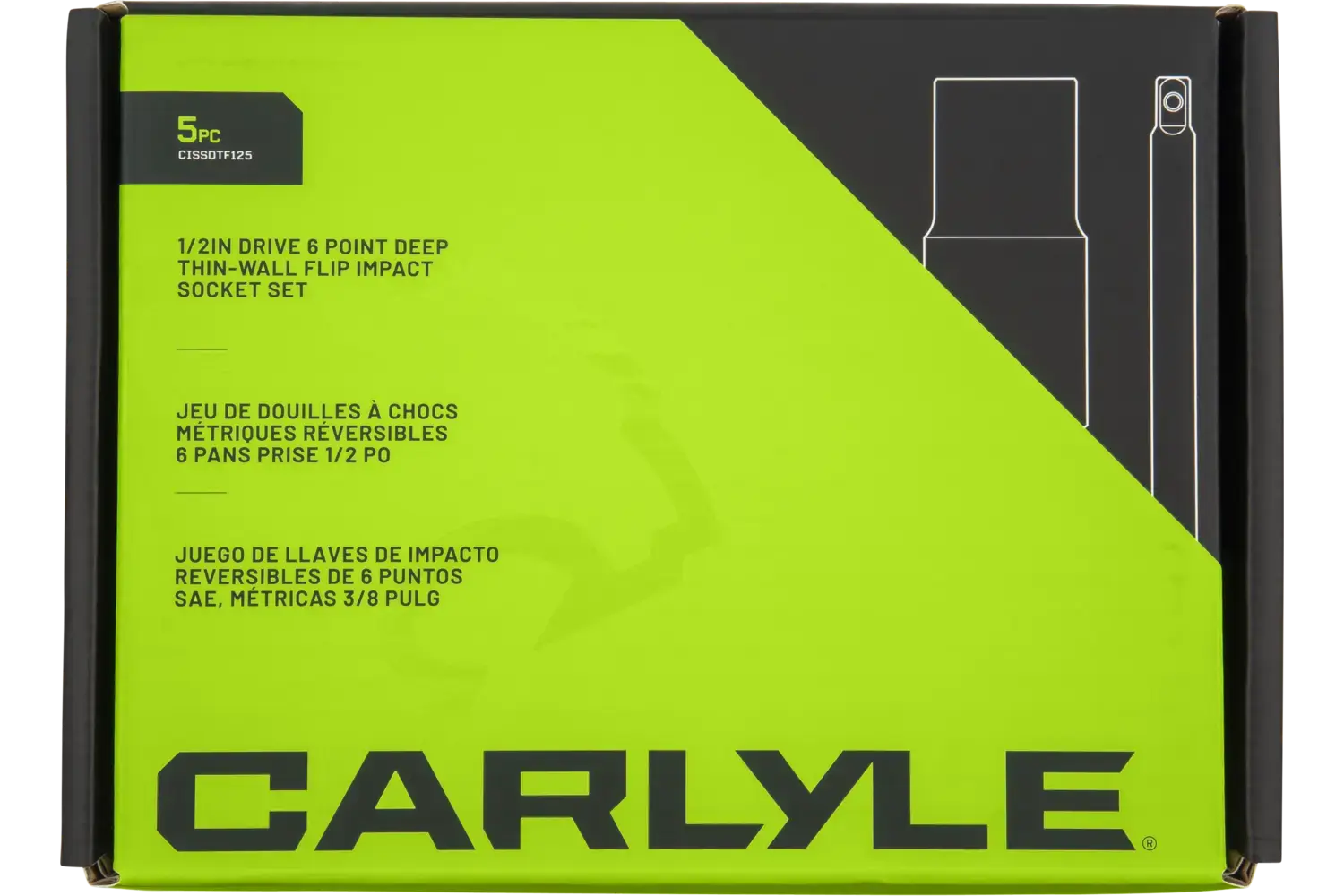 Built for those who work hard and demand versatility, the Carlyle 1/2 in. Drive Impact Flip Socket Set - SAE & Metric is forged from high-quality chrome molybdenum alloy steel to handle the toughest jobs with ease. Designed with a radius corner for better gripping on fasteners and chamfered openings for faster, hassle-free socket fit, this set is all about efficiency and durability. Available in a compact 2-piece or versatile 4-piece set, it’s the rugged, go-to tool for pros and DIYers who need reliable performance in every turn.