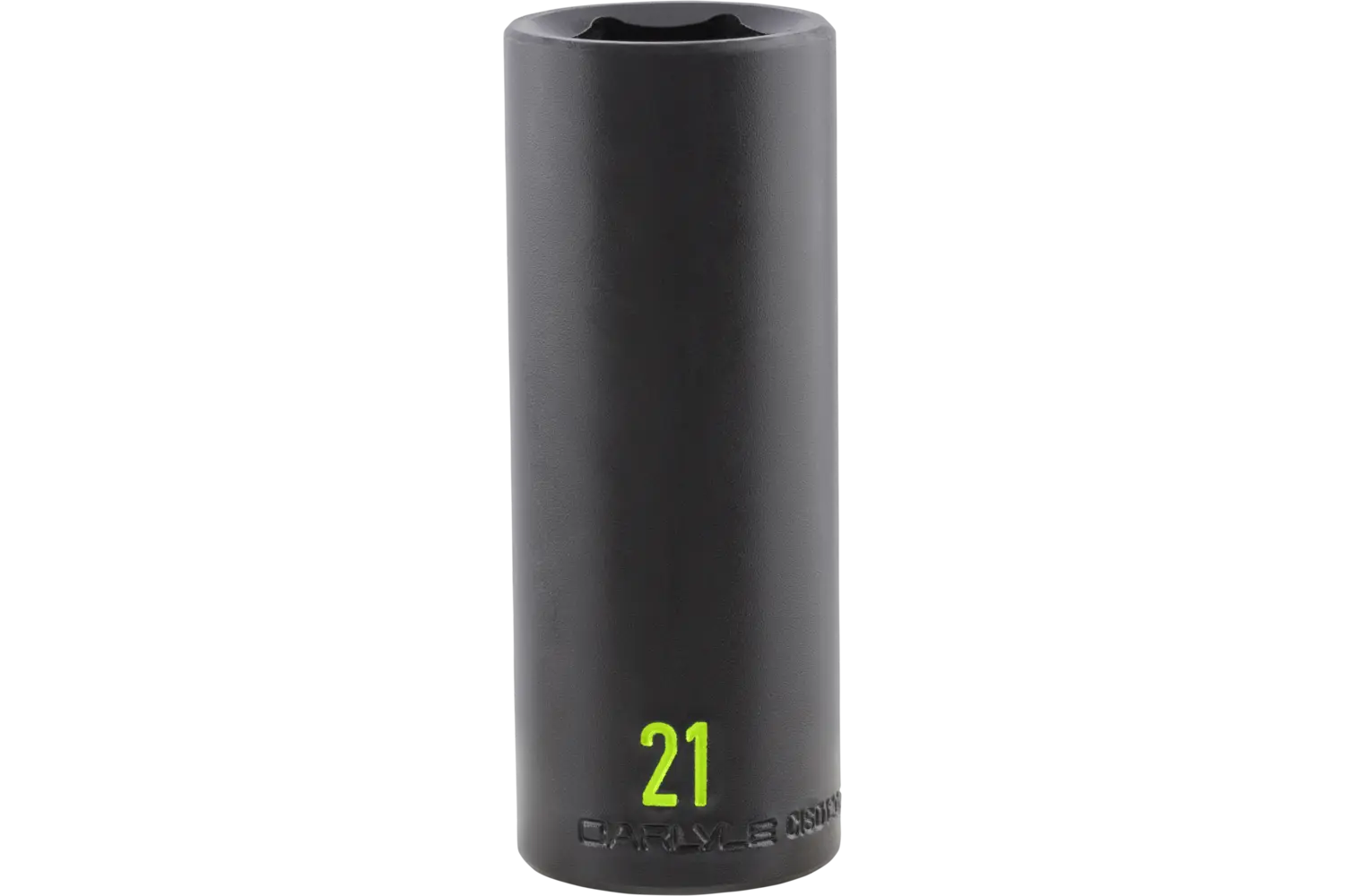 Experience unparalleled versatility and strength with Carlyle 1/2 in. Drive Deep Impact Sockets - Metric, crafted from premium chrome molybdenum alloy steel for superior durability and performance. These sockets feature a radius corner design that enhances the grip on fasteners, reducing wear and extending the life of both the tool and fastener. The chamfered openings providing a faster, more efficient fit over fasteners, streamlining your workflow. Available in a comprehensive range of configurations—including 6-point, 12-point, deep impact, extra thin wall deep impact, and universal impact—these sockets are designed to meet the diverse needs of any professional or DIY project. Whether you're working on automotive repairs or industrial applications, Carlyle's Deep Impact Sockets deliver reliable, precise performance every time.