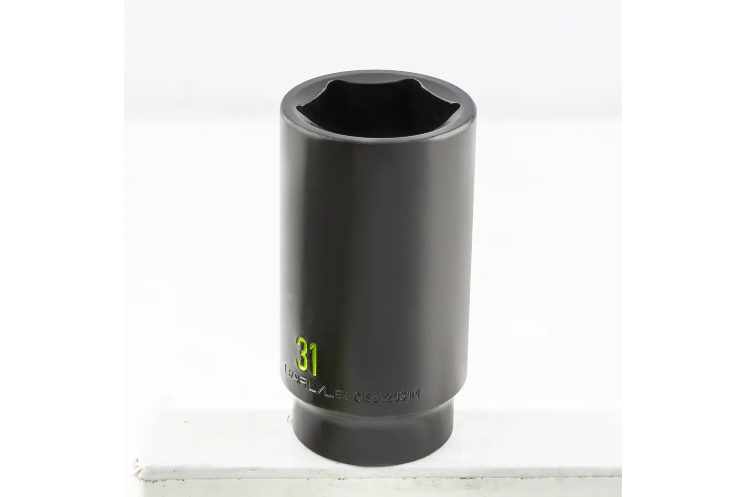 Experience unparalleled versatility and strength with Carlyle 1/2 in. Drive Deep Impact Sockets - Metric, crafted from premium chrome molybdenum alloy steel for superior durability and performance. These sockets feature a radius corner design that enhances the grip on fasteners, reducing wear and extending the life of both the tool and fastener. The chamfered openings providing a faster, more efficient fit over fasteners, streamlining your workflow. Available in a comprehensive range of configurations—including 6-point, 12-point, deep impact, extra thin wall deep impact, and universal impact—these sockets are designed to meet the diverse needs of any professional or DIY project. Whether you're working on automotive repairs or industrial applications, Carlyle's Deep Impact Sockets deliver reliable, precise performance every time.