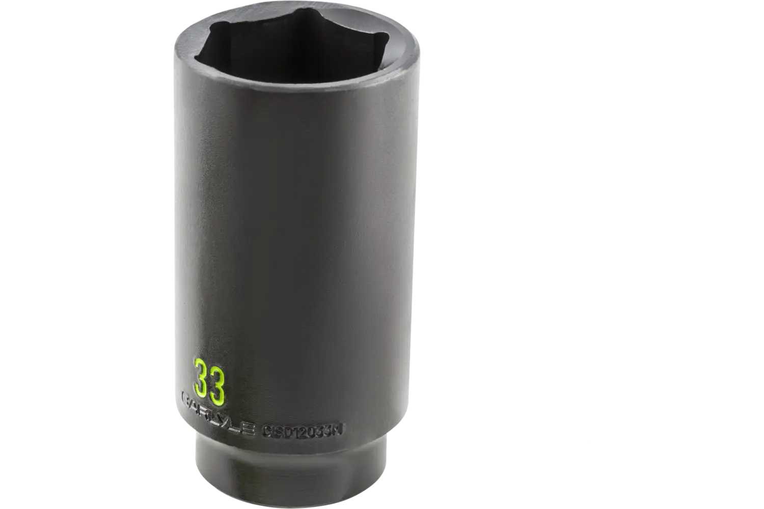 Experience unparalleled versatility and strength with Carlyle 1/2 in. Drive Deep Impact Sockets - Metric, crafted from premium chrome molybdenum alloy steel for superior durability and performance. These sockets feature a radius corner design that enhances the grip on fasteners, reducing wear and extending the life of both the tool and fastener. The chamfered openings providing a faster, more efficient fit over fasteners, streamlining your workflow. Available in a comprehensive range of configurations—including 6-point, 12-point, deep impact, extra thin wall deep impact, and universal impact—these sockets are designed to meet the diverse needs of any professional or DIY project. Whether you're working on automotive repairs or industrial applications, Carlyle's Deep Impact Sockets deliver reliable, precise performance every time.