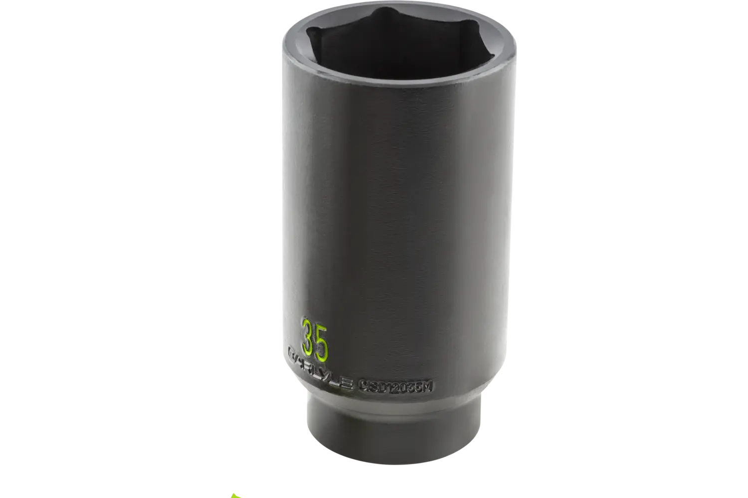 Experience unparalleled versatility and strength with Carlyle 1/2 in. Drive Deep Impact Sockets - Metric, crafted from premium chrome molybdenum alloy steel for superior durability and performance. These sockets feature a radius corner design that enhances the grip on fasteners, reducing wear and extending the life of both the tool and fastener. The chamfered openings providing a faster, more efficient fit over fasteners, streamlining your workflow. Available in a comprehensive range of configurations—including 6-point, 12-point, deep impact, extra thin wall deep impact, and universal impact—these sockets are designed to meet the diverse needs of any professional or DIY project. Whether you're working on automotive repairs or industrial applications, Carlyle's Deep Impact Sockets deliver reliable, precise performance every time.