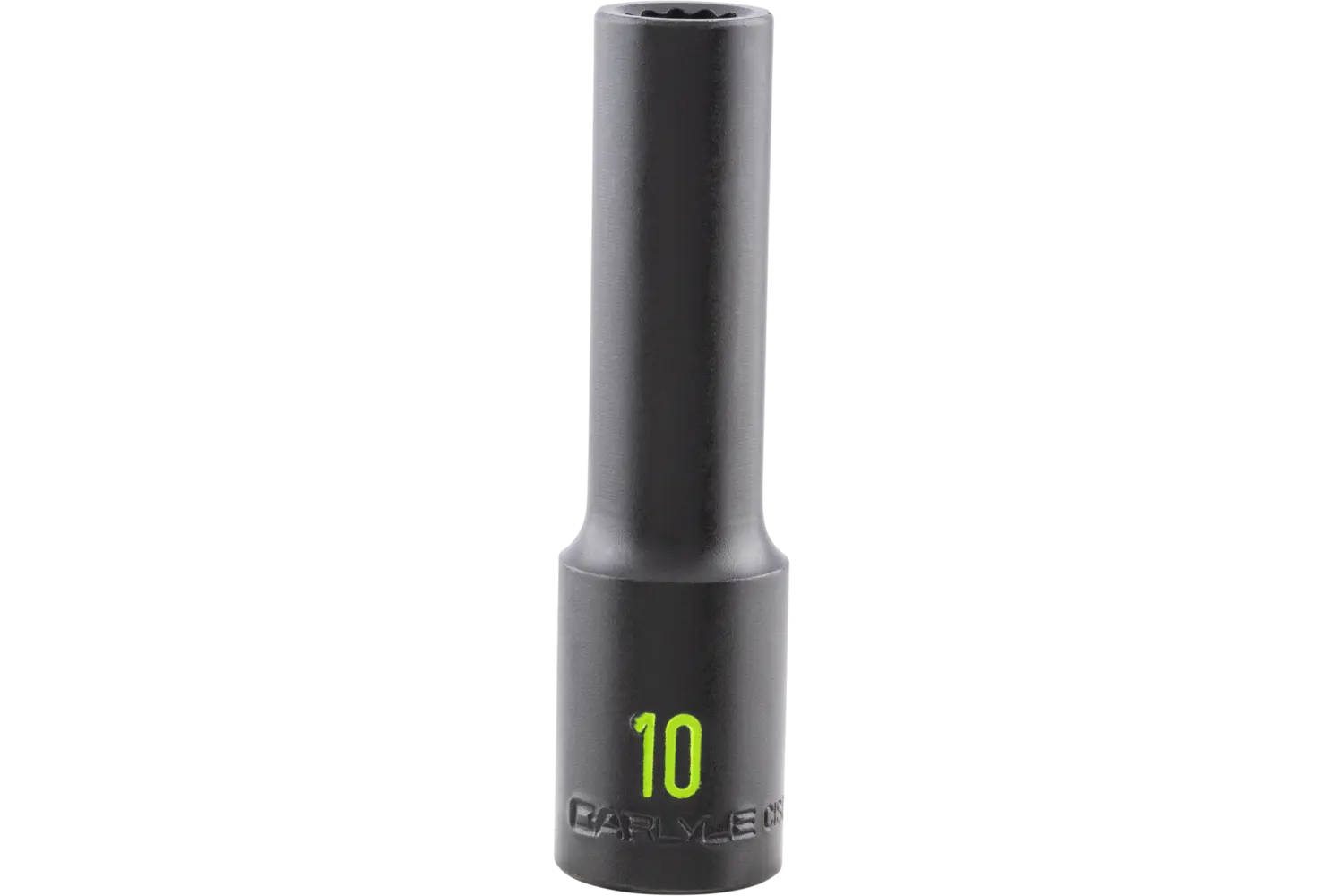 Experience unparalleled versatility and strength with Carlyle 1/2 in. Drive Deep Impact Sockets - Metric, crafted from premium chrome molybdenum alloy steel for superior durability and performance. These sockets feature a radius corner design that enhances the grip on fasteners, reducing wear and extending the life of both the tool and fastener. The chamfered openings providing a faster, more efficient fit over fasteners, streamlining your workflow. Available in a comprehensive range of configurations—including 6-point, 12-point, deep impact, extra thin wall deep impact, and universal impact—these sockets are designed to meet the diverse needs of any professional or DIY project. Whether you're working on automotive repairs or industrial applications, Carlyle's Deep Impact Sockets deliver reliable, precise performance every time.