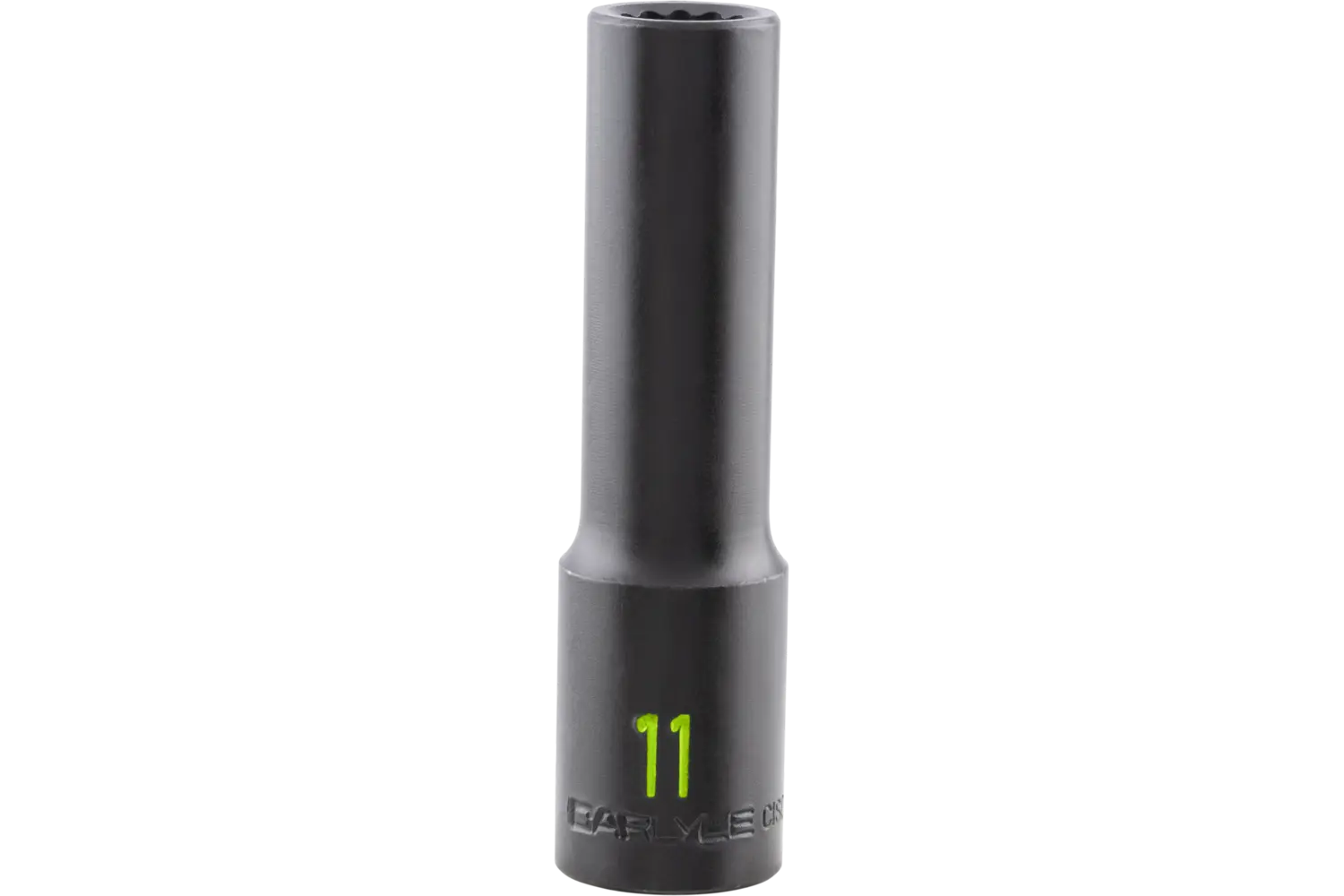 Experience unparalleled versatility and strength with Carlyle 1/2 in. Drive Deep Impact Sockets - Metric, crafted from premium chrome molybdenum alloy steel for superior durability and performance. These sockets feature a radius corner design that enhances the grip on fasteners, reducing wear and extending the life of both the tool and fastener. The chamfered openings providing a faster, more efficient fit over fasteners, streamlining your workflow. Available in a comprehensive range of configurations—including 6-point, 12-point, deep impact, extra thin wall deep impact, and universal impact—these sockets are designed to meet the diverse needs of any professional or DIY project. Whether you're working on automotive repairs or industrial applications, Carlyle's Deep Impact Sockets deliver reliable, precise performance every time.