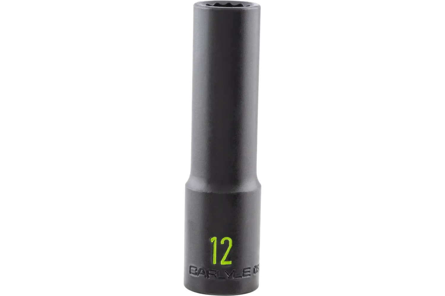 Experience unparalleled versatility and strength with Carlyle 1/2 in. Drive Deep Impact Sockets - Metric, crafted from premium chrome molybdenum alloy steel for superior durability and performance. These sockets feature a radius corner design that enhances the grip on fasteners, reducing wear and extending the life of both the tool and fastener. The chamfered openings providing a faster, more efficient fit over fasteners, streamlining your workflow. Available in a comprehensive range of configurations—including 6-point, 12-point, deep impact, extra thin wall deep impact, and universal impact—these sockets are designed to meet the diverse needs of any professional or DIY project. Whether you're working on automotive repairs or industrial applications, Carlyle's Deep Impact Sockets deliver reliable, precise performance every time.