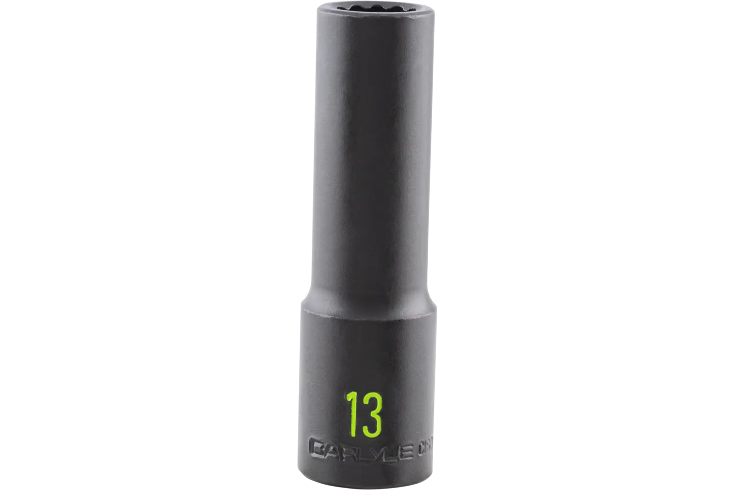 Experience unparalleled versatility and strength with Carlyle 1/2 in. Drive Deep Impact Sockets - Metric, crafted from premium chrome molybdenum alloy steel for superior durability and performance. These sockets feature a radius corner design that enhances the grip on fasteners, reducing wear and extending the life of both the tool and fastener. The chamfered openings providing a faster, more efficient fit over fasteners, streamlining your workflow. Available in a comprehensive range of configurations—including 6-point, 12-point, deep impact, extra thin wall deep impact, and universal impact—these sockets are designed to meet the diverse needs of any professional or DIY project. Whether you're working on automotive repairs or industrial applications, Carlyle's Deep Impact Sockets deliver reliable, precise performance every time.