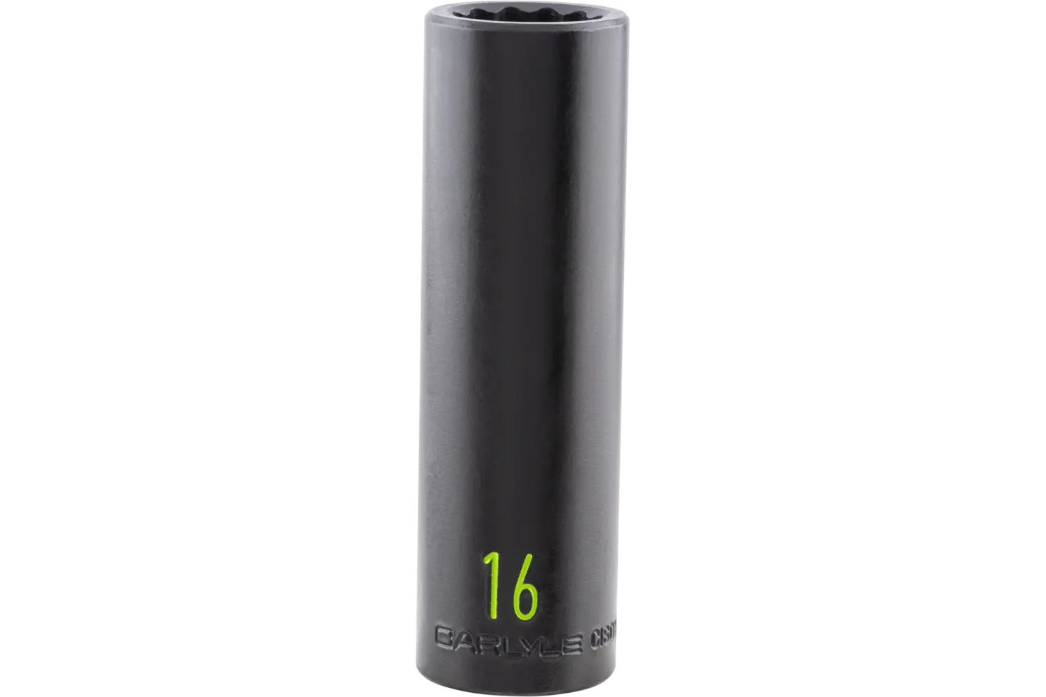 Experience unparalleled versatility and strength with Carlyle 1/2 in. Drive Deep Impact Sockets - Metric, crafted from premium chrome molybdenum alloy steel for superior durability and performance. These sockets feature a radius corner design that enhances the grip on fasteners, reducing wear and extending the life of both the tool and fastener. The chamfered openings providing a faster, more efficient fit over fasteners, streamlining your workflow. Available in a comprehensive range of configurations—including 6-point, 12-point, deep impact, extra thin wall deep impact, and universal impact—these sockets are designed to meet the diverse needs of any professional or DIY project. Whether you're working on automotive repairs or industrial applications, Carlyle's Deep Impact Sockets deliver reliable, precise performance every time.