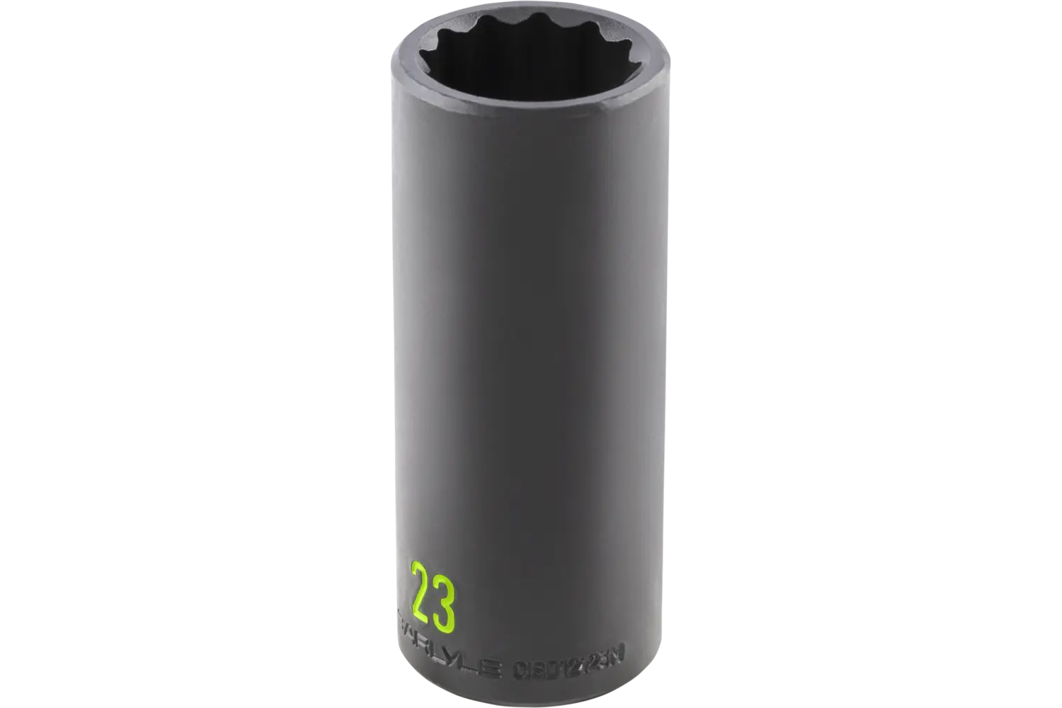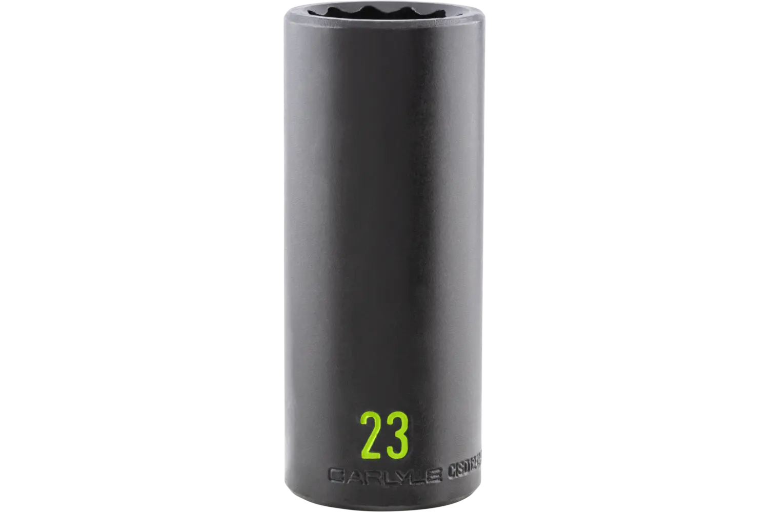 Experience unparalleled versatility and strength with Carlyle 1/2 in. Drive Deep Impact Sockets - Metric, crafted from premium chrome molybdenum alloy steel for superior durability and performance. These sockets feature a radius corner design that enhances the grip on fasteners, reducing wear and extending the life of both the tool and fastener. The chamfered openings providing a faster, more efficient fit over fasteners, streamlining your workflow. Available in a comprehensive range of configurations—including 6-point, 12-point, deep impact, extra thin wall deep impact, and universal impact—these sockets are designed to meet the diverse needs of any professional or DIY project. Whether you're working on automotive repairs or industrial applications, Carlyle's Deep Impact Sockets deliver reliable, precise performance every time.