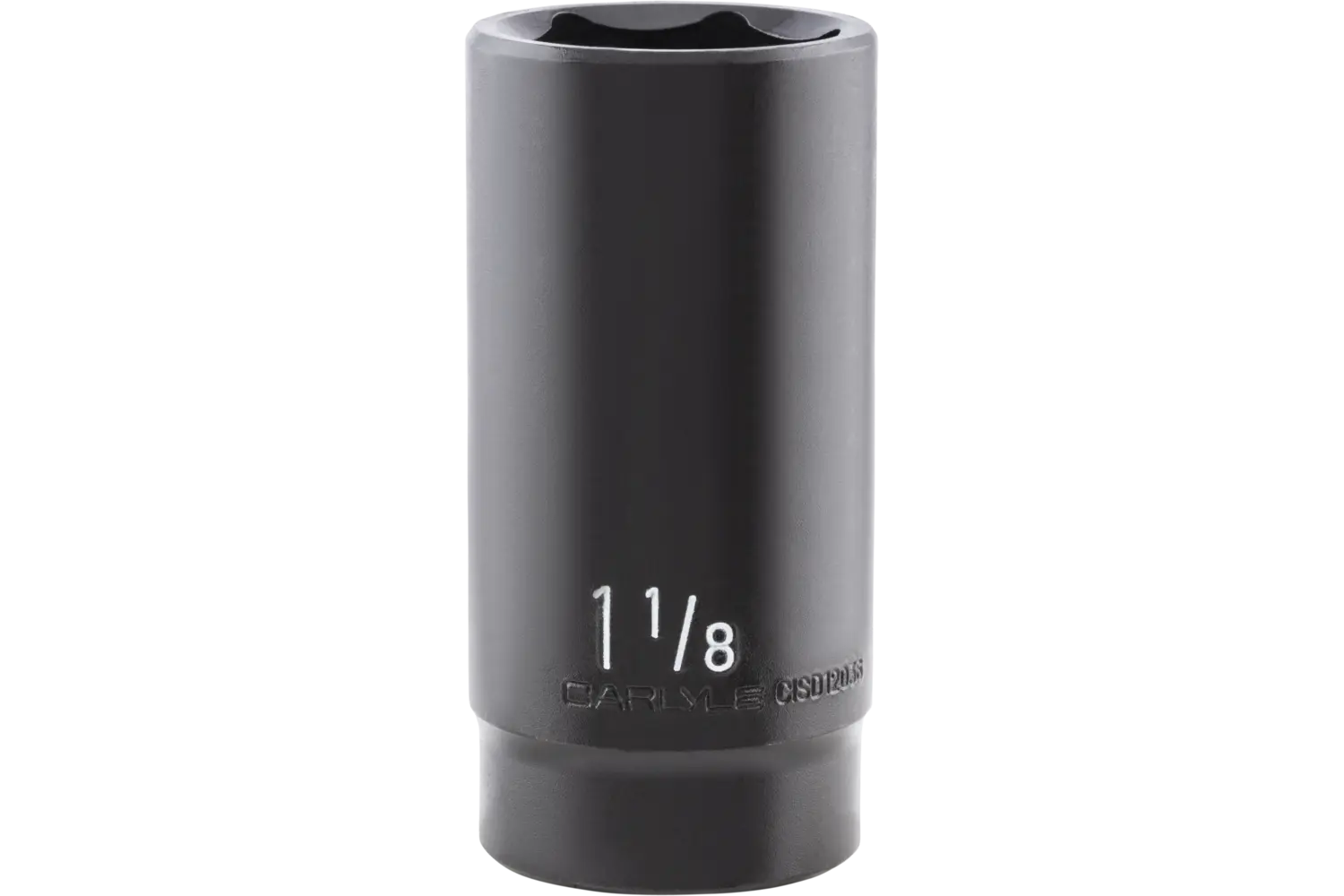 Unlock the full potential of your toolkit with Carlyle 1/2 in. Drive Deep Impact Sockets - SAE, expertly forged from high-quality chrome molybdenum alloy steel to deliver unmatched durability and resilience. These sockets are designed with a radius corner that enhances gripping on fasteners, minimizing wear and extending the lifespan of both the tool and fastener. The chamfered openings providing a quicker, more efficient fit over fasteners, optimizing your workflow and saving you valuable time. Available in a diverse array of configurations—including 6-point, 12-point, deep impact, extra thin wall deep impact, and universal impact—these sockets are tailored to meet the varied demands of any professional or DIY project. Whether you're tackling automotive repairs or industrial tasks, Carlyle's Deep Impact Sockets provide the dependable, precise performance you need to succeed.