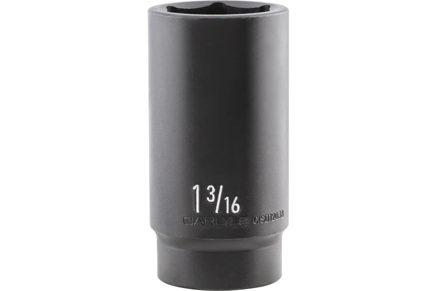 Unlock the full potential of your toolkit with Carlyle 1/2 in. Drive Deep Impact Sockets - SAE, expertly forged from high-quality chrome molybdenum alloy steel to deliver unmatched durability and resilience. These sockets are designed with a radius corner that enhances gripping on fasteners, minimizing wear and extending the lifespan of both the tool and fastener. The chamfered openings providing a quicker, more efficient fit over fasteners, optimizing your workflow and saving you valuable time. Available in a diverse array of configurations—including 6-point, 12-point, deep impact, extra thin wall deep impact, and universal impact—these sockets are tailored to meet the varied demands of any professional or DIY project. Whether you're tackling automotive repairs or industrial tasks, Carlyle's Deep Impact Sockets provide the dependable, precise performance you need to succeed.