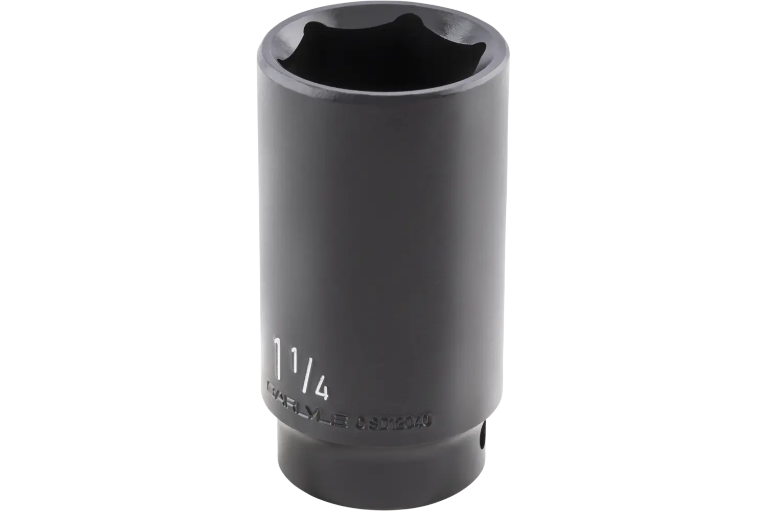 Unlock the full potential of your toolkit with Carlyle 1/2 in. Drive Deep Impact Sockets - SAE, expertly forged from high-quality chrome molybdenum alloy steel to deliver unmatched durability and resilience. These sockets are designed with a radius corner that enhances gripping on fasteners, minimizing wear and extending the lifespan of both the tool and fastener. The chamfered openings providing a quicker, more efficient fit over fasteners, optimizing your workflow and saving you valuable time. Available in a diverse array of configurations—including 6-point, 12-point, deep impact, extra thin wall deep impact, and universal impact—these sockets are tailored to meet the varied demands of any professional or DIY project. Whether you're tackling automotive repairs or industrial tasks, Carlyle's Deep Impact Sockets provide the dependable, precise performance you need to succeed.