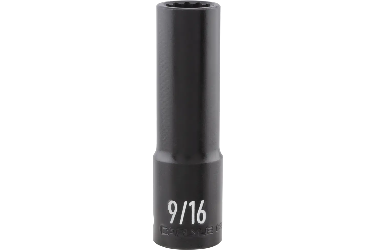Unlock the full potential of your toolkit with Carlyle 1/2 in. Drive Deep Impact Sockets - SAE, expertly forged from high-quality chrome molybdenum alloy steel to deliver unmatched durability and resilience. These sockets are designed with a radius corner that enhances gripping on fasteners, minimizing wear and extending the lifespan of both the tool and fastener. The chamfered openings providing a quicker, more efficient fit over fasteners, optimizing your workflow and saving you valuable time. Available in a diverse array of configurations—including 6-point, 12-point, deep impact, extra thin wall deep impact, and universal impact—these sockets are tailored to meet the varied demands of any professional or DIY project. Whether you're tackling automotive repairs or industrial tasks, Carlyle's Deep Impact Sockets provide the dependable, precise performance you need to succeed.
