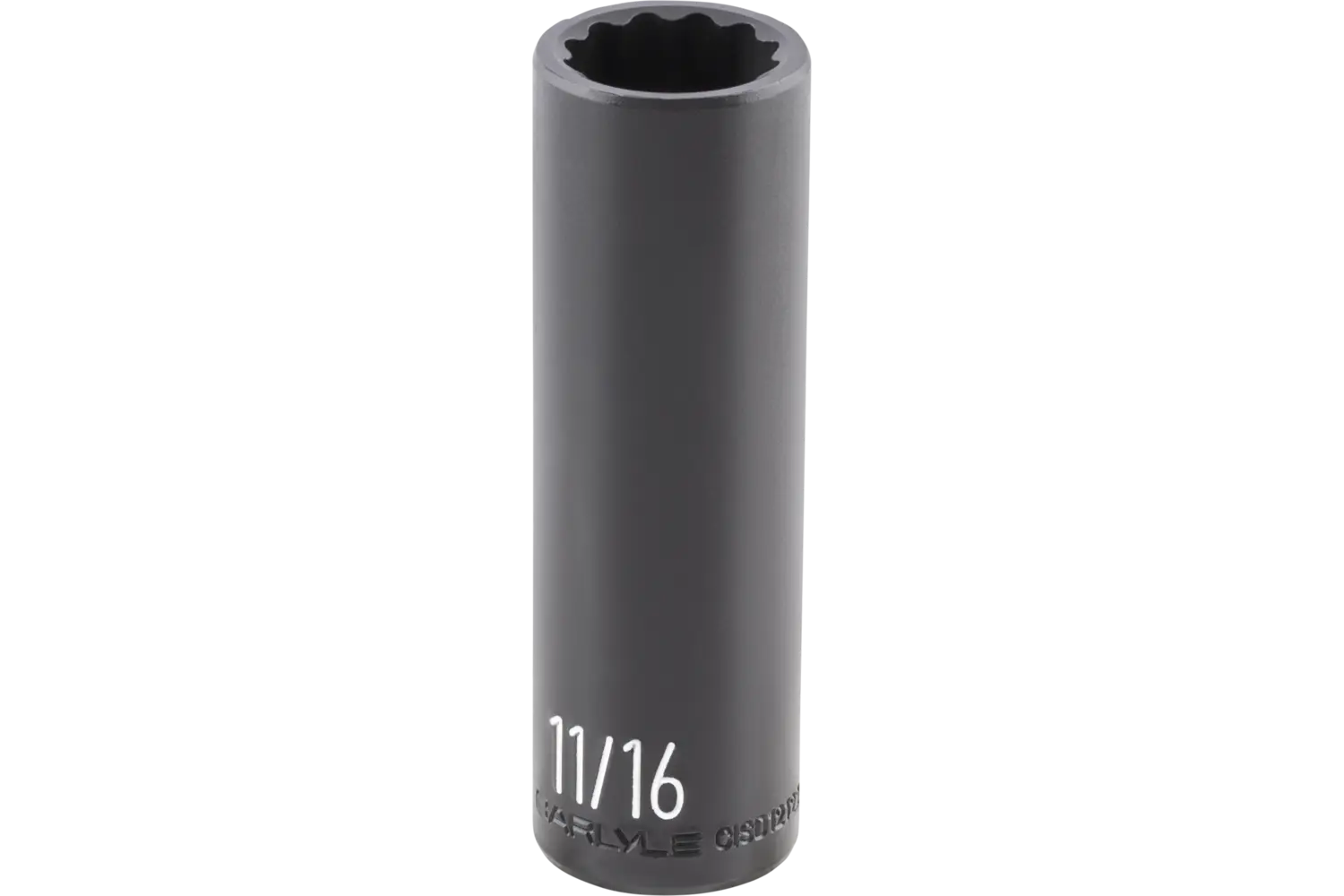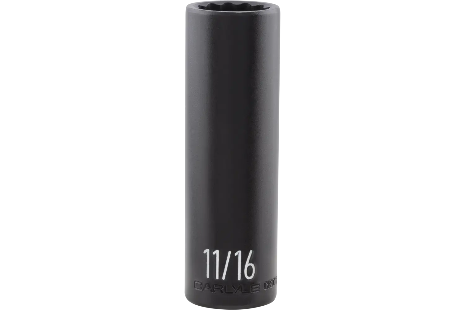Unlock the full potential of your toolkit with Carlyle 1/2 in. Drive Deep Impact Sockets - SAE, expertly forged from high-quality chrome molybdenum alloy steel to deliver unmatched durability and resilience. These sockets are designed with a radius corner that enhances gripping on fasteners, minimizing wear and extending the lifespan of both the tool and fastener. The chamfered openings providing a quicker, more efficient fit over fasteners, optimizing your workflow and saving you valuable time. Available in a diverse array of configurations—including 6-point, 12-point, deep impact, extra thin wall deep impact, and universal impact—these sockets are tailored to meet the varied demands of any professional or DIY project. Whether you're tackling automotive repairs or industrial tasks, Carlyle's Deep Impact Sockets provide the dependable, precise performance you need to succeed.