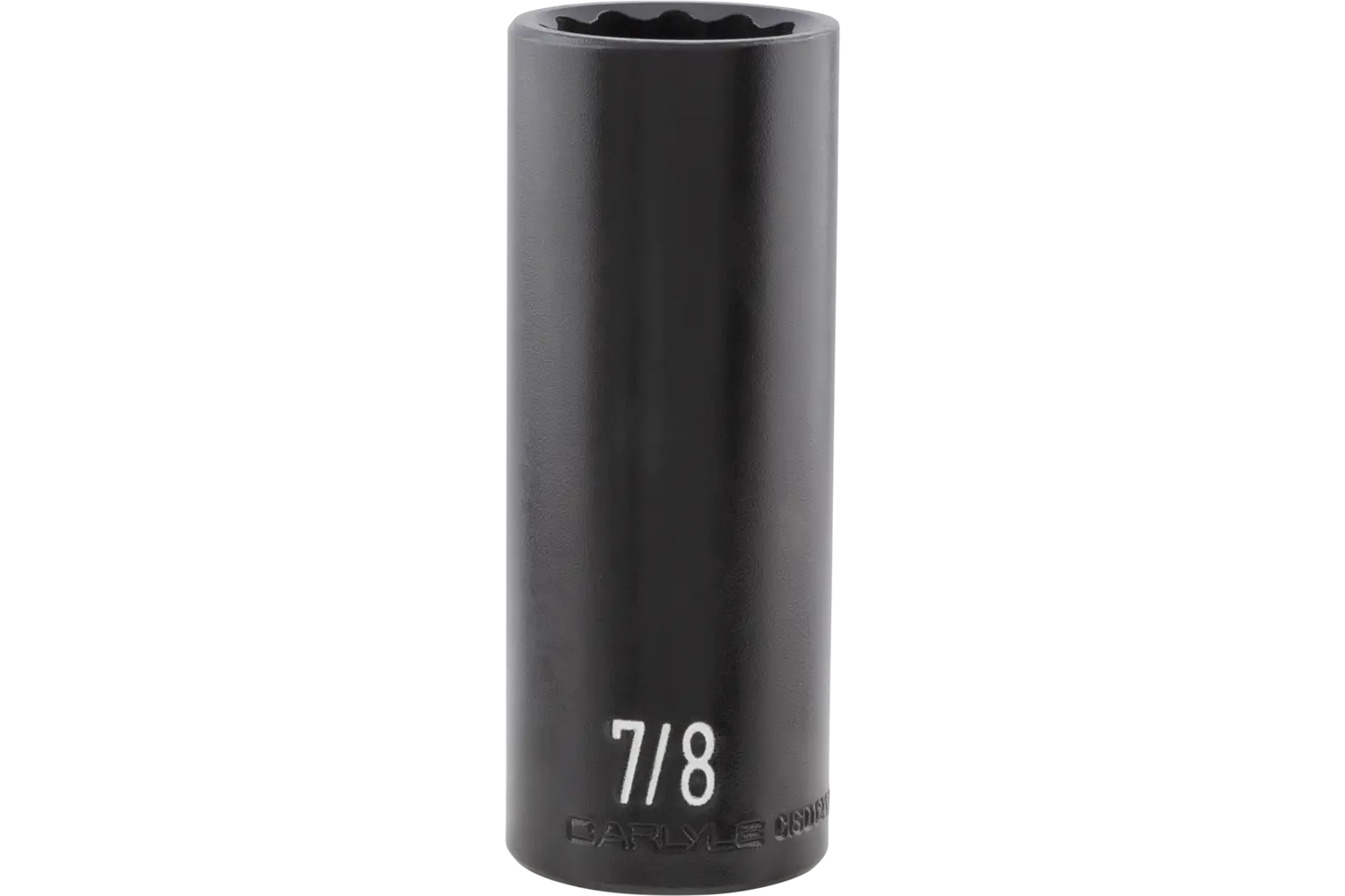 Unlock the full potential of your toolkit with Carlyle 1/2 in. Drive Deep Impact Sockets - SAE, expertly forged from high-quality chrome molybdenum alloy steel to deliver unmatched durability and resilience. These sockets are designed with a radius corner that enhances gripping on fasteners, minimizing wear and extending the lifespan of both the tool and fastener. The chamfered openings providing a quicker, more efficient fit over fasteners, optimizing your workflow and saving you valuable time. Available in a diverse array of configurations—including 6-point, 12-point, deep impact, extra thin wall deep impact, and universal impact—these sockets are tailored to meet the varied demands of any professional or DIY project. Whether you're tackling automotive repairs or industrial tasks, Carlyle's Deep Impact Sockets provide the dependable, precise performance you need to succeed.