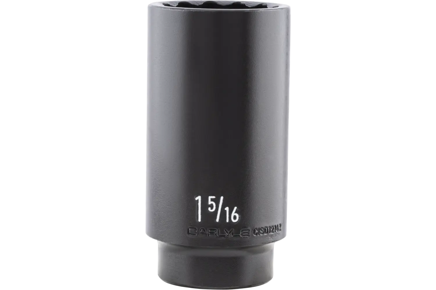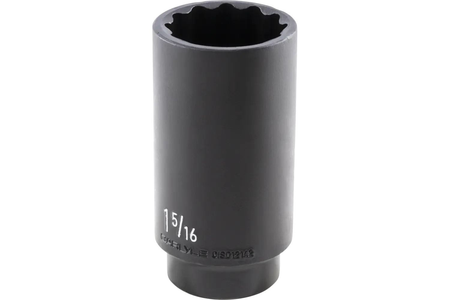 Unlock the full potential of your toolkit with Carlyle 1/2 in. Drive Deep Impact Sockets - SAE, expertly forged from high-quality chrome molybdenum alloy steel to deliver unmatched durability and resilience. These sockets are designed with a radius corner that enhances gripping on fasteners, minimizing wear and extending the lifespan of both the tool and fastener. The chamfered openings providing a quicker, more efficient fit over fasteners, optimizing your workflow and saving you valuable time. Available in a diverse array of configurations—including 6-point, 12-point, deep impact, extra thin wall deep impact, and universal impact—these sockets are tailored to meet the varied demands of any professional or DIY project. Whether you're tackling automotive repairs or industrial tasks, Carlyle's Deep Impact Sockets provide the dependable, precise performance you need to succeed.