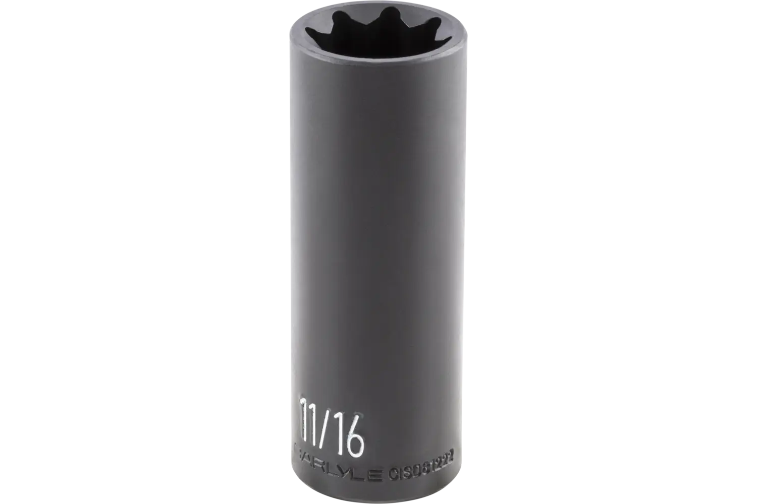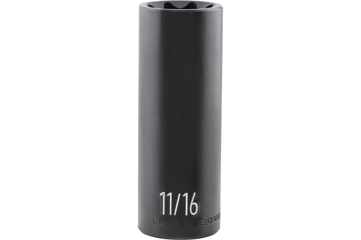 Unlock the full potential of your toolkit with Carlyle 1/2 in. Drive Deep Impact Sockets - SAE, expertly forged from high-quality chrome molybdenum alloy steel to deliver unmatched durability and resilience. These sockets are designed with a radius corner that enhances gripping on fasteners, minimizing wear and extending the lifespan of both the tool and fastener. The chamfered openings providing a quicker, more efficient fit over fasteners, optimizing your workflow and saving you valuable time. Available in a diverse array of configurations—including 6-point, 12-point, deep impact, extra thin wall deep impact, and universal impact—these sockets are tailored to meet the varied demands of any professional or DIY project. Whether you're tackling automotive repairs or industrial tasks, Carlyle's Deep Impact Sockets provide the dependable, precise performance you need to succeed.