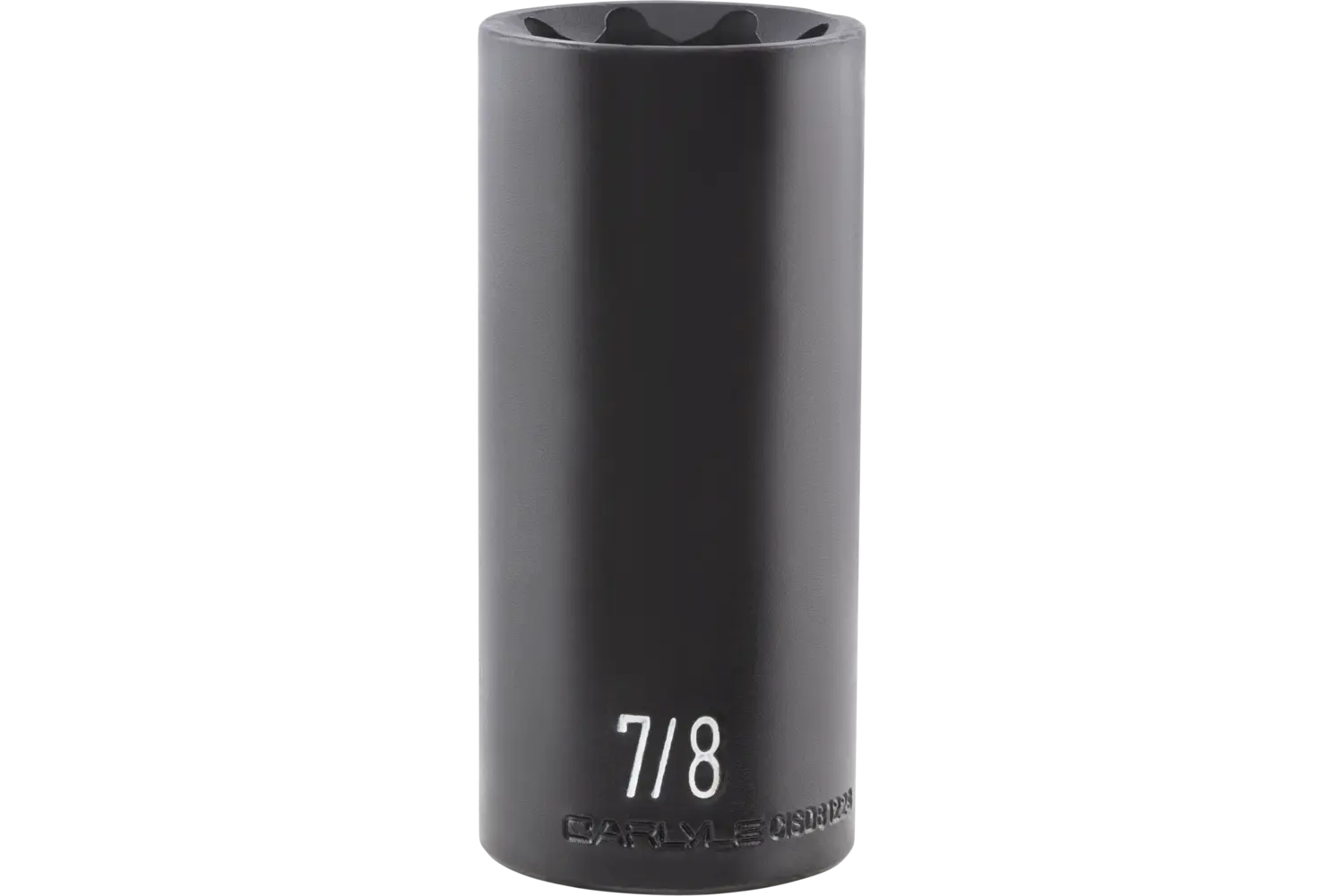 Unlock the full potential of your toolkit with Carlyle 1/2 in. Drive Deep Impact Sockets - SAE, expertly forged from high-quality chrome molybdenum alloy steel to deliver unmatched durability and resilience. These sockets are designed with a radius corner that enhances gripping on fasteners, minimizing wear and extending the lifespan of both the tool and fastener. The chamfered openings providing a quicker, more efficient fit over fasteners, optimizing your workflow and saving you valuable time. Available in a diverse array of configurations—including 6-point, 12-point, deep impact, extra thin wall deep impact, and universal impact—these sockets are tailored to meet the varied demands of any professional or DIY project. Whether you're tackling automotive repairs or industrial tasks, Carlyle's Deep Impact Sockets provide the dependable, precise performance you need to succeed.
