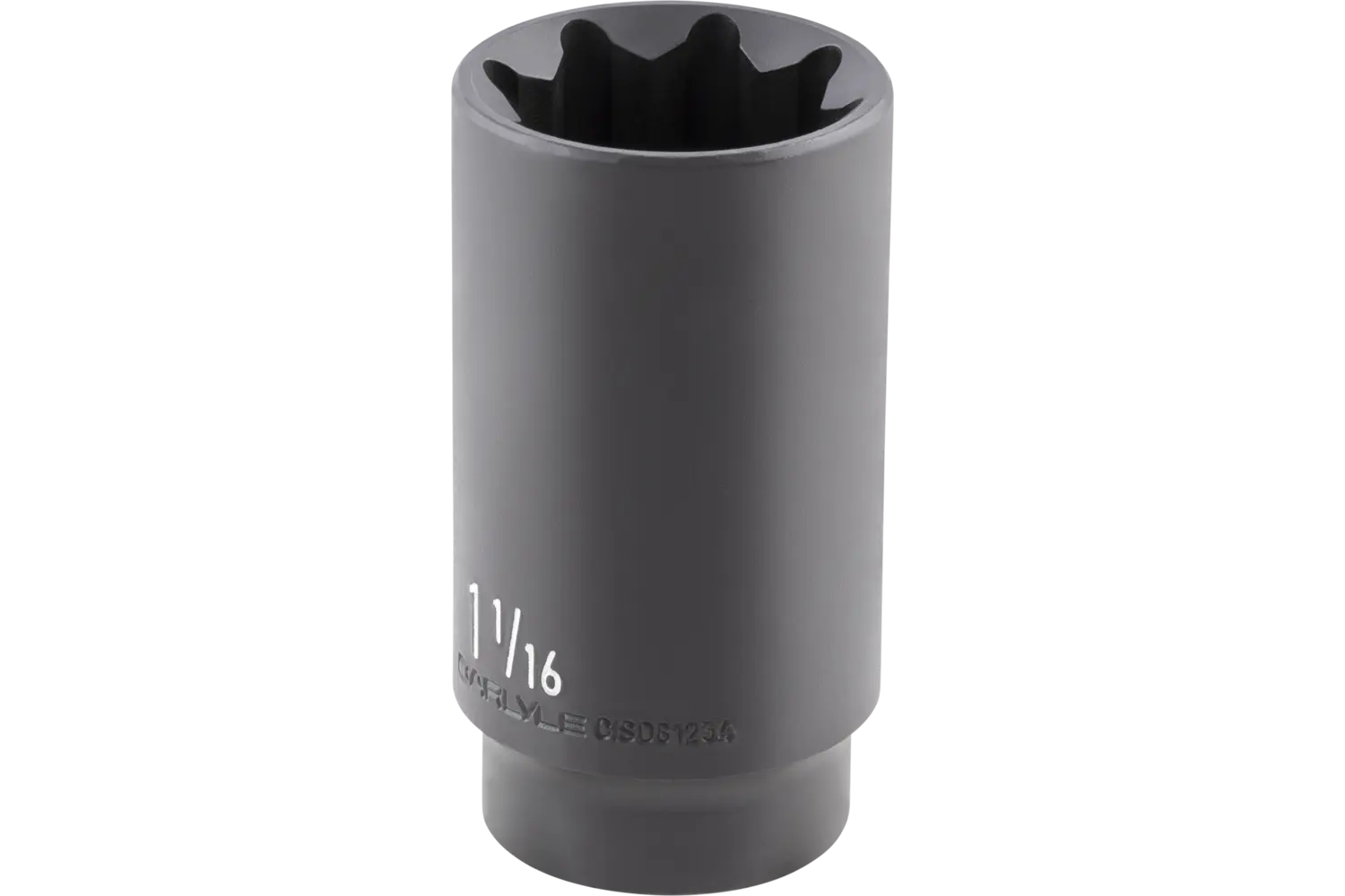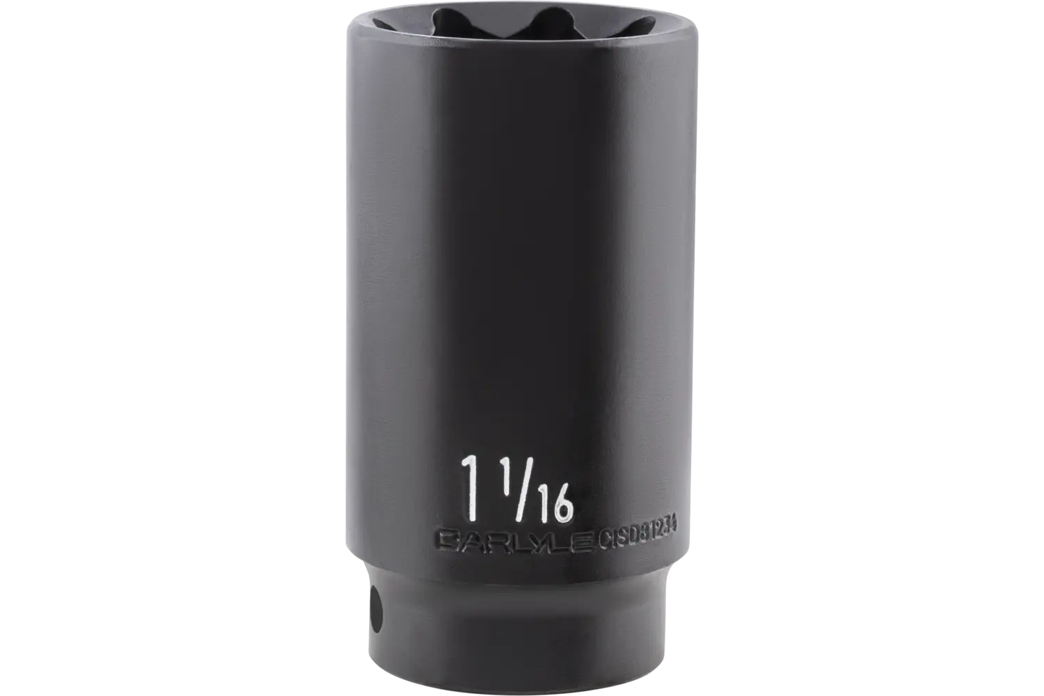 Unlock the full potential of your toolkit with Carlyle 1/2 in. Drive Deep Impact Sockets - SAE, expertly forged from high-quality chrome molybdenum alloy steel to deliver unmatched durability and resilience. These sockets are designed with a radius corner that enhances gripping on fasteners, minimizing wear and extending the lifespan of both the tool and fastener. The chamfered openings providing a quicker, more efficient fit over fasteners, optimizing your workflow and saving you valuable time. Available in a diverse array of configurations—including 6-point, 12-point, deep impact, extra thin wall deep impact, and universal impact—these sockets are tailored to meet the varied demands of any professional or DIY project. Whether you're tackling automotive repairs or industrial tasks, Carlyle's Deep Impact Sockets provide the dependable, precise performance you need to succeed.