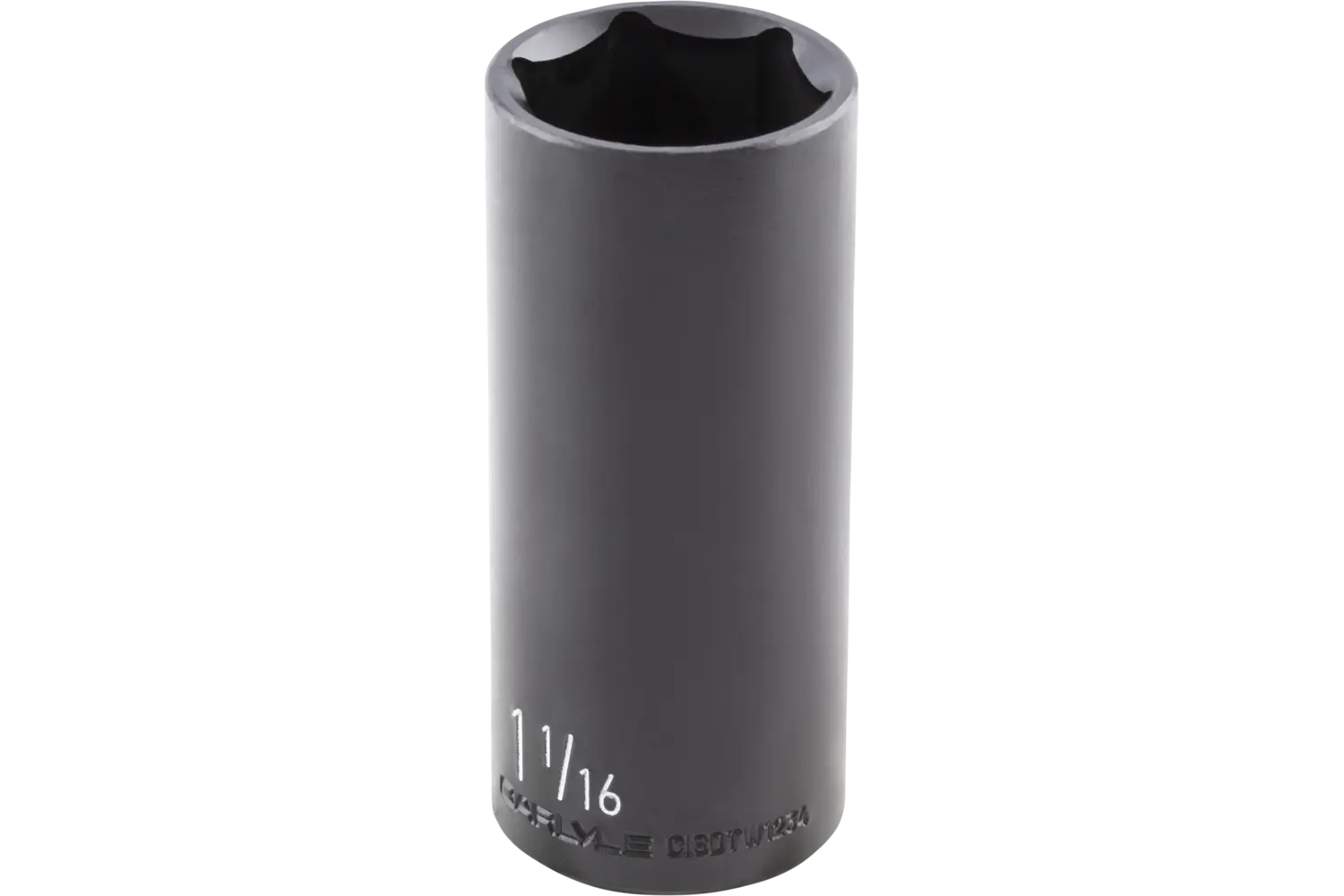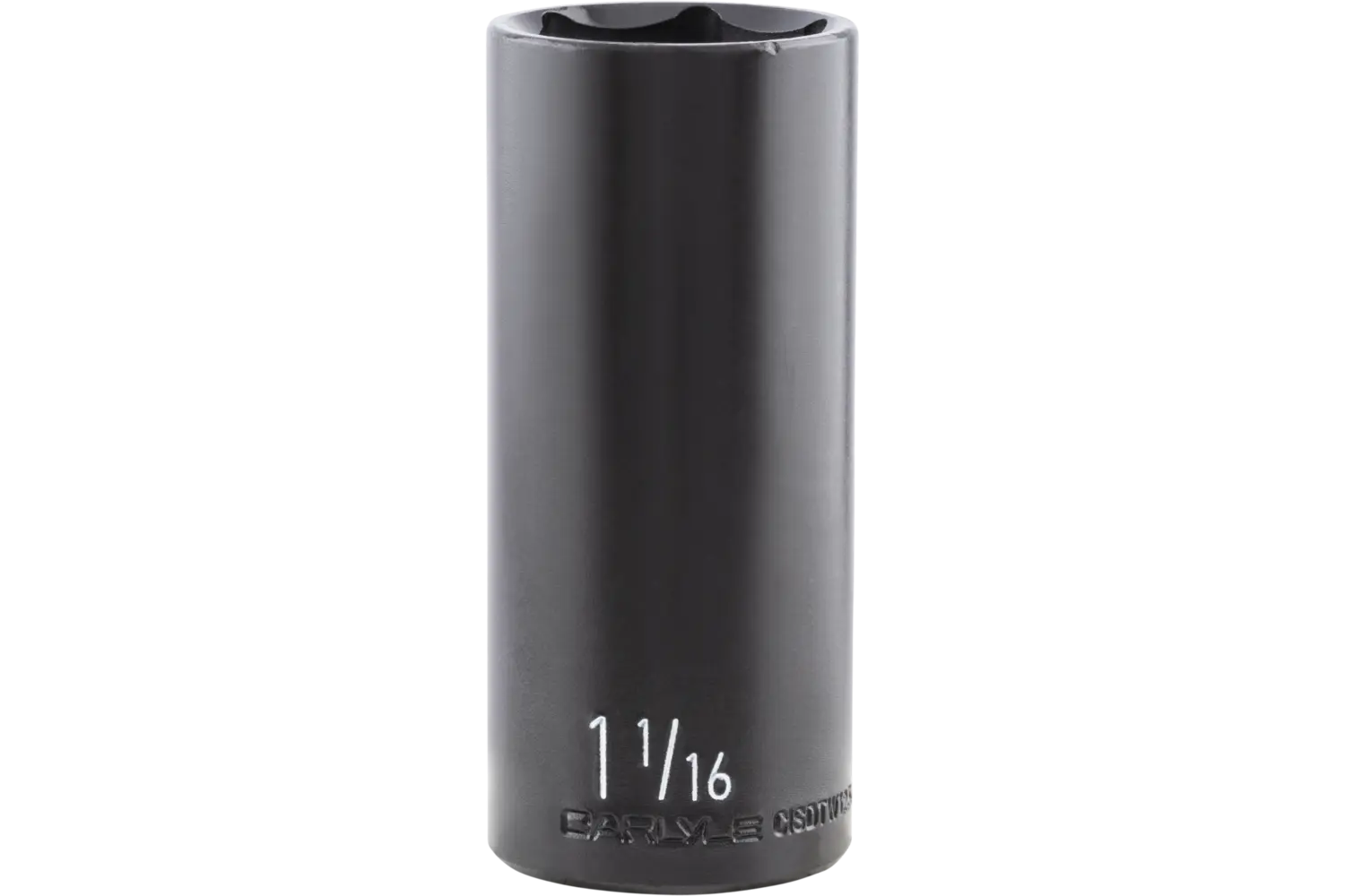 Unlock the full potential of your toolkit with Carlyle 1/2 in. Drive Deep Impact Sockets - SAE, expertly forged from high-quality chrome molybdenum alloy steel to deliver unmatched durability and resilience. These sockets are designed with a radius corner that enhances gripping on fasteners, minimizing wear and extending the lifespan of both the tool and fastener. The chamfered openings providing a quicker, more efficient fit over fasteners, optimizing your workflow and saving you valuable time. Available in a diverse array of configurations—including 6-point, 12-point, deep impact, extra thin wall deep impact, and universal impact—these sockets are tailored to meet the varied demands of any professional or DIY project. Whether you're tackling automotive repairs or industrial tasks, Carlyle's Deep Impact Sockets provide the dependable, precise performance you need to succeed.