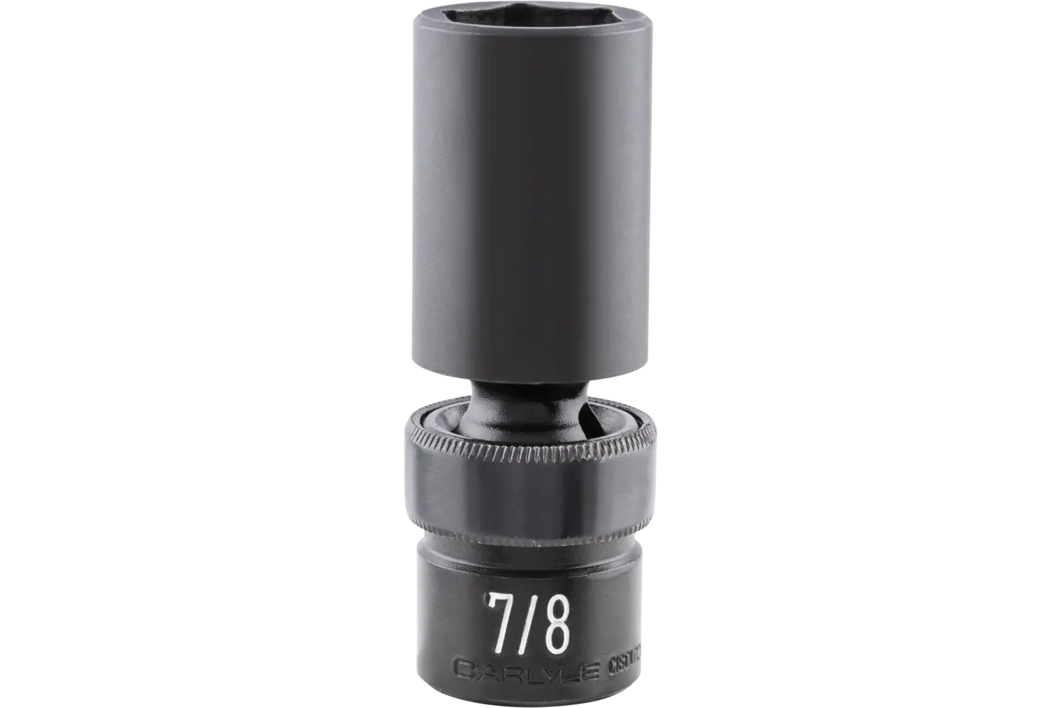 Unlock the full potential of your toolkit with Carlyle 1/2 in. Drive Deep Impact Sockets - SAE, expertly forged from high-quality chrome molybdenum alloy steel to deliver unmatched durability and resilience. These sockets are designed with a radius corner that enhances gripping on fasteners, minimizing wear and extending the lifespan of both the tool and fastener. The chamfered openings providing a quicker, more efficient fit over fasteners, optimizing your workflow and saving you valuable time. Available in a diverse array of configurations—including 6-point, 12-point, deep impact, extra thin wall deep impact, and universal impact—these sockets are tailored to meet the varied demands of any professional or DIY project. Whether you're tackling automotive repairs or industrial tasks, Carlyle's Deep Impact Sockets provide the dependable, precise performance you need to succeed.