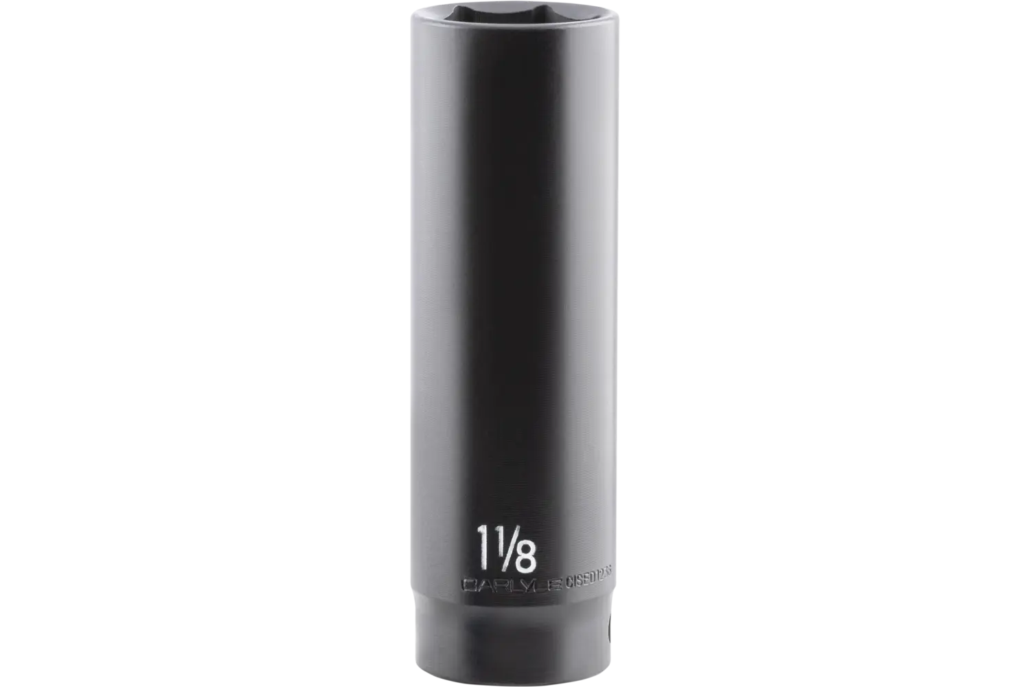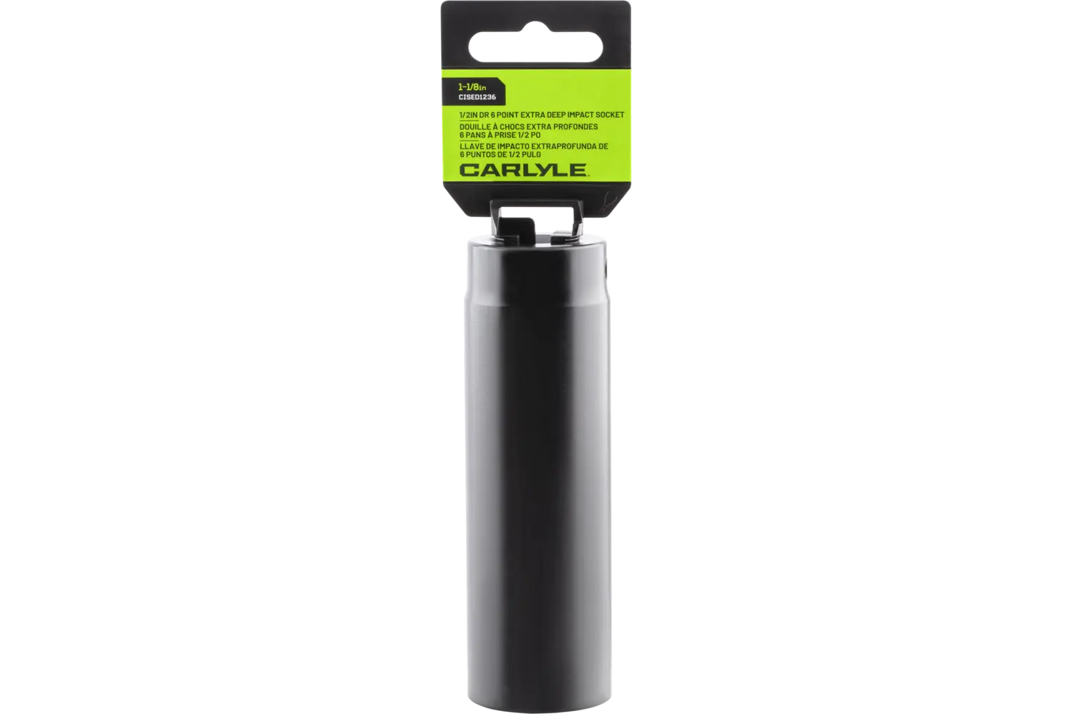 Unlock the full potential of your toolkit with Carlyle 1/2 in. Drive Deep Impact Sockets - SAE, expertly forged from high-quality chrome molybdenum alloy steel to deliver unmatched durability and resilience. These sockets are designed with a radius corner that enhances gripping on fasteners, minimizing wear and extending the lifespan of both the tool and fastener. The chamfered openings providing a quicker, more efficient fit over fasteners, optimizing your workflow and saving you valuable time. Available in a diverse array of configurations—including 6-point, 12-point, deep impact, extra thin wall deep impact, and universal impact—these sockets are tailored to meet the varied demands of any professional or DIY project. Whether you're tackling automotive repairs or industrial tasks, Carlyle's Deep Impact Sockets provide the dependable, precise performance you need to succeed.