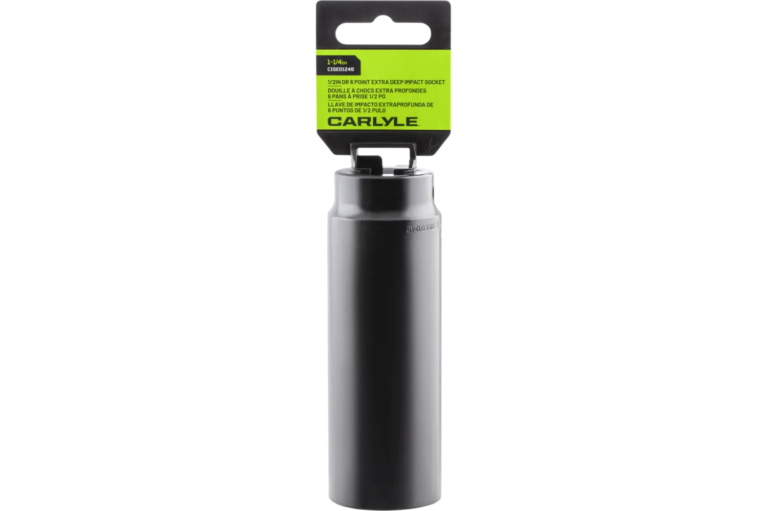 Unlock the full potential of your toolkit with Carlyle 1/2 in. Drive Deep Impact Sockets - SAE, expertly forged from high-quality chrome molybdenum alloy steel to deliver unmatched durability and resilience. These sockets are designed with a radius corner that enhances gripping on fasteners, minimizing wear and extending the lifespan of both the tool and fastener. The chamfered openings providing a quicker, more efficient fit over fasteners, optimizing your workflow and saving you valuable time. Available in a diverse array of configurations—including 6-point, 12-point, deep impact, extra thin wall deep impact, and universal impact—these sockets are tailored to meet the varied demands of any professional or DIY project. Whether you're tackling automotive repairs or industrial tasks, Carlyle's Deep Impact Sockets provide the dependable, precise performance you need to succeed.