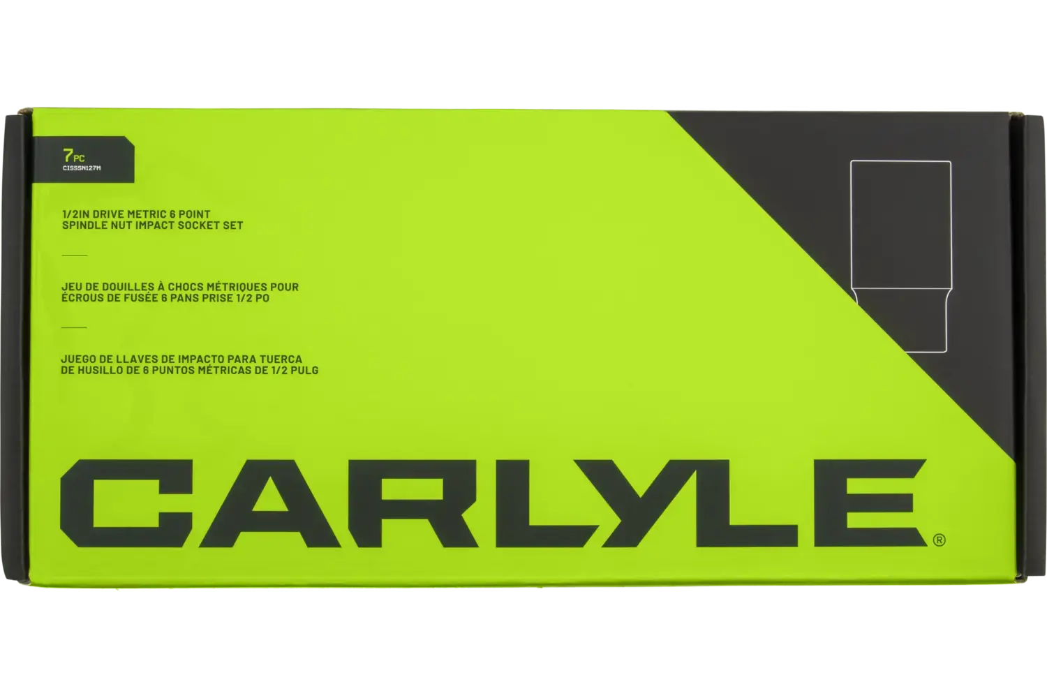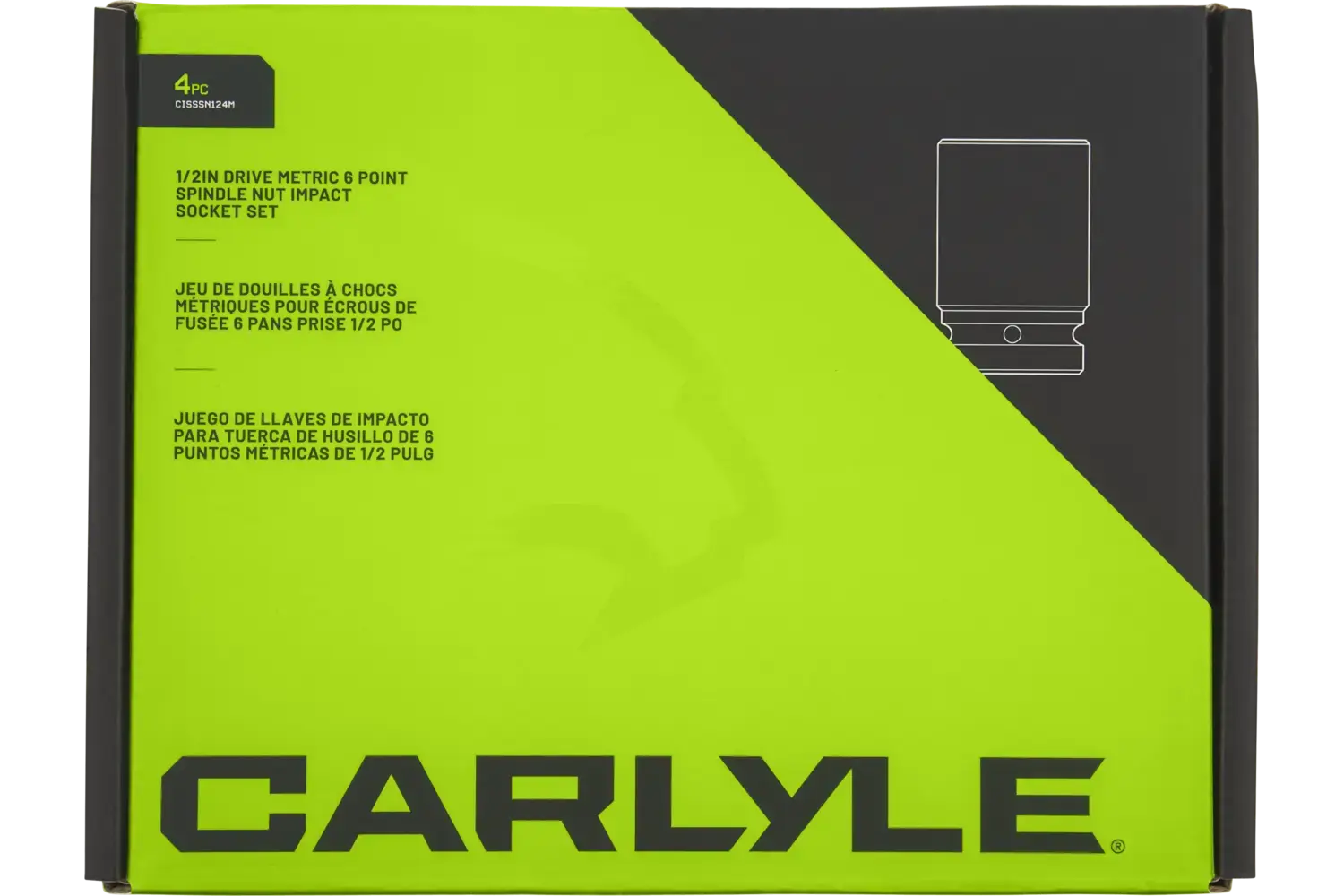 The Carlyle 1/2 in. Drive Spindle Nut Socket Set - Metric is built for professionals who demand strength and precision in their tools. Crafted from chrome molybdenum alloy steel, this set is designed to withstand heavy-duty use while delivering consistent performance. The radius corner design offers a secure grip on fasteners, reducing wear and maximizing torque. Chamfered openings allow for quick and easy socket fit, while the set is available in 4-piece or 7-piece configurations. Designed for durability and reliability, this set is perfect for tackling spindle nut applications with confidence.