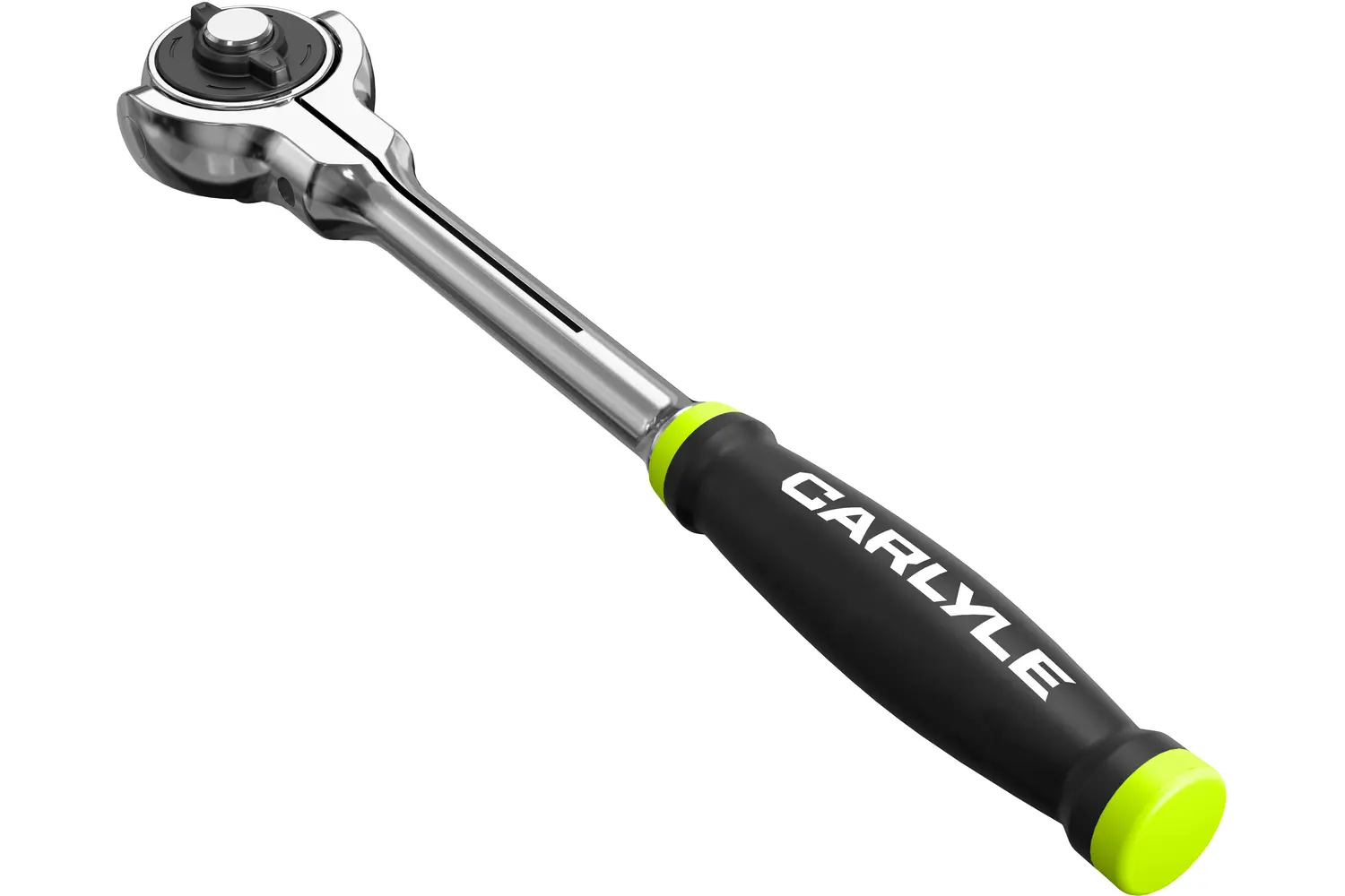 The Carlyle 1/2 in. Drive Ratchets are versatile tools for accessing tight spaces. Available in standard, long, and flexible styles, these ratchets feature a reversible lever for single-hand operation and a slim profile for ease of use. Built for durability, they are a reliable choice for professional and DIY tasks.