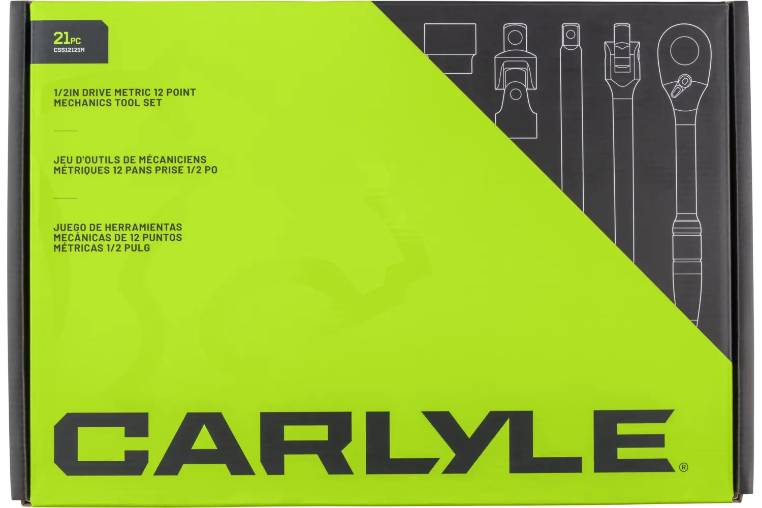 Built to handle the toughest jobs with precision and strength, the Carlyle 1/2 in. Drive Standard Depth Chrome Socket Set - Metric is the go-to choice for pro mechanics and hardcore DIYers. Designed with a radius-cornered 12-point or 6-point socket design, it delivers superior fastener control and reduces wear, while the highly polished chrome-plated finish provides rust resistance for long-lasting durability. Available in 6-point sets (8, 15, or 21 pieces) or 12-point sets (10, 19, or 21 pieces), this set has the versatility to tackle any task. The 21-piece sets come in a rugged blow-molded case for easy portability, while the smaller sets include a socket rail for streamlined storage. Rugged, reliable, and built to perform, this set is ready to take on whatever the job demands.