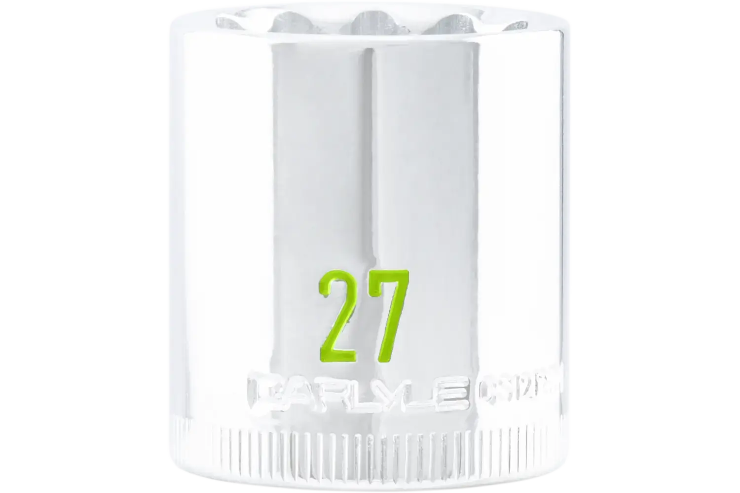 Elevate your tool game with Carlyle 1/2 in. Drive Standard Depth Chrome Sockets - Metric, crafted for those who crave both performance and style. Featuring a cutting-edge radius-cornered design, these sockets reduce bolt and nut wear while enhancing grip, providing you can tackle any task with ease. The full polish chrome finish not only delivers a sleek look but also provides exceptional rust resistance, keeping your tools in top shape. Thanks to the deep-rolled stamped vertical knurling, identifying the right tool is effortless, even in a crowded toolbox. Available in both 6-point and 12-point options, and offering a versatile range of metric and SAE sizes, these sockets are ready to handle anything you throw their way. Get ready to work smarter and shine brighter!