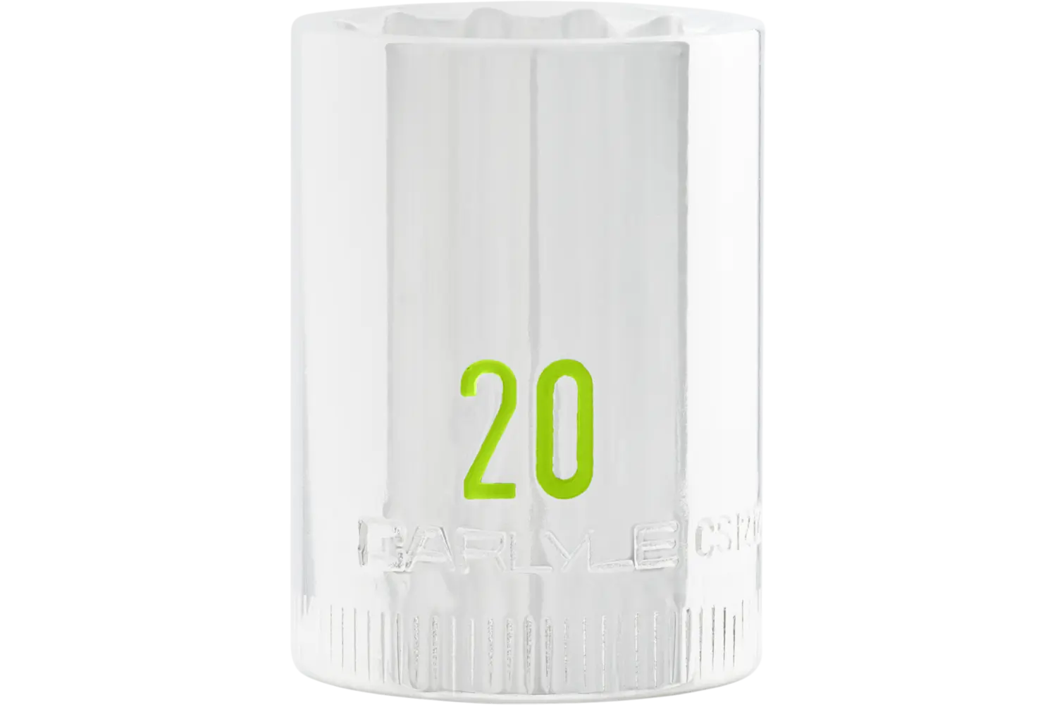 Elevate your tool game with Carlyle 1/2 in. Drive Standard Depth Chrome Sockets - Metric, crafted for those who crave both performance and style. Featuring a cutting-edge radius-cornered design, these sockets reduce bolt and nut wear while enhancing grip, providing you can tackle any task with ease. The full polish chrome finish not only delivers a sleek look but also provides exceptional rust resistance, keeping your tools in top shape. Thanks to the deep-rolled stamped vertical knurling, identifying the right tool is effortless, even in a crowded toolbox. Available in both 6-point and 12-point options, and offering a versatile range of metric and SAE sizes, these sockets are ready to handle anything you throw their way. Get ready to work smarter and shine brighter!