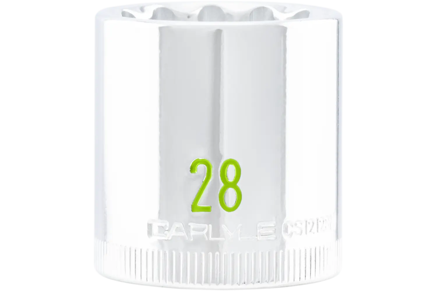 Elevate your tool game with Carlyle 1/2 in. Drive Standard Depth Chrome Sockets - Metric, crafted for those who crave both performance and style. Featuring a cutting-edge radius-cornered design, these sockets reduce bolt and nut wear while enhancing grip, providing you can tackle any task with ease. The full polish chrome finish not only delivers a sleek look but also provides exceptional rust resistance, keeping your tools in top shape. Thanks to the deep-rolled stamped vertical knurling, identifying the right tool is effortless, even in a crowded toolbox. Available in both 6-point and 12-point options, and offering a versatile range of metric and SAE sizes, these sockets are ready to handle anything you throw their way. Get ready to work smarter and shine brighter!
