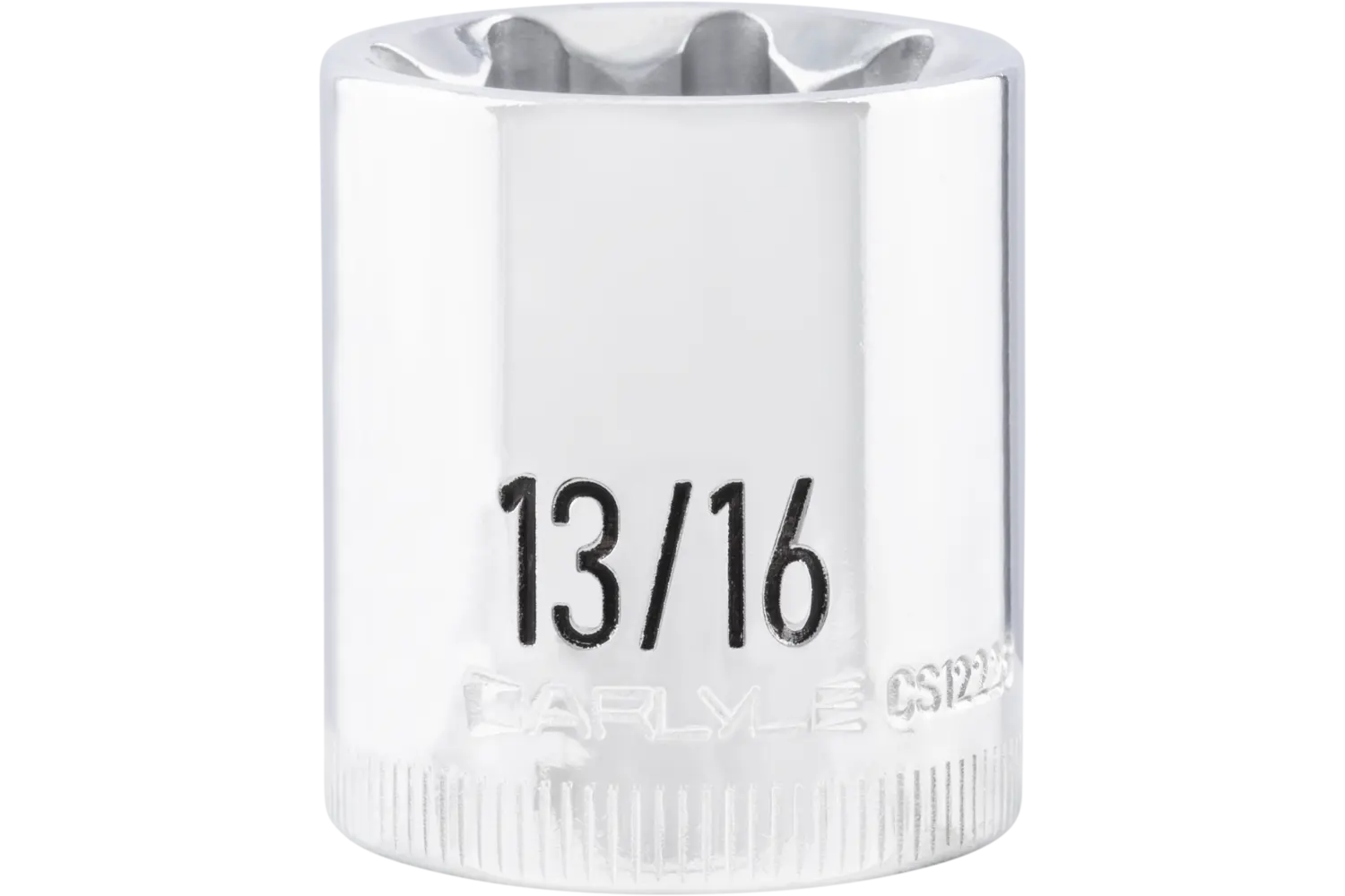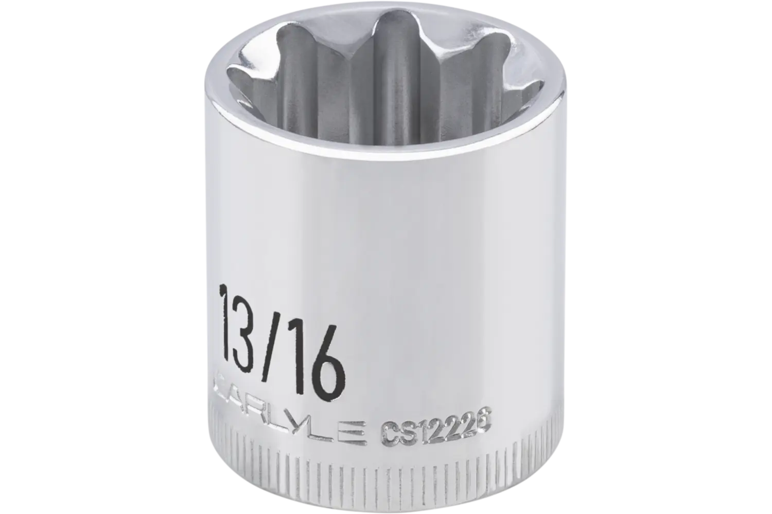 Take your toolkit to the next level with Carlyle 1/2 in. Drive Standard Depth Chrome Sockets - SAE, perfect for those who value both precision and style. These sockets feature an innovative radius-cornered design that reduces wear on bolts and nuts while boosting grip, providing every project is a breeze. The full polish chrome finish not only adds a sleek touch but also offers outstanding rust resistance, keeping your tools looking fresh. With deep-rolled stamped vertical knurling, finding the right tool is a snap, even in the most cluttered toolbox. Available in versatile 6-point, 8-point, and 12-point options, and covering a wide range of SAE sizes, these sockets are your go-to for any task. Get ready to work smarter and shine brighter!