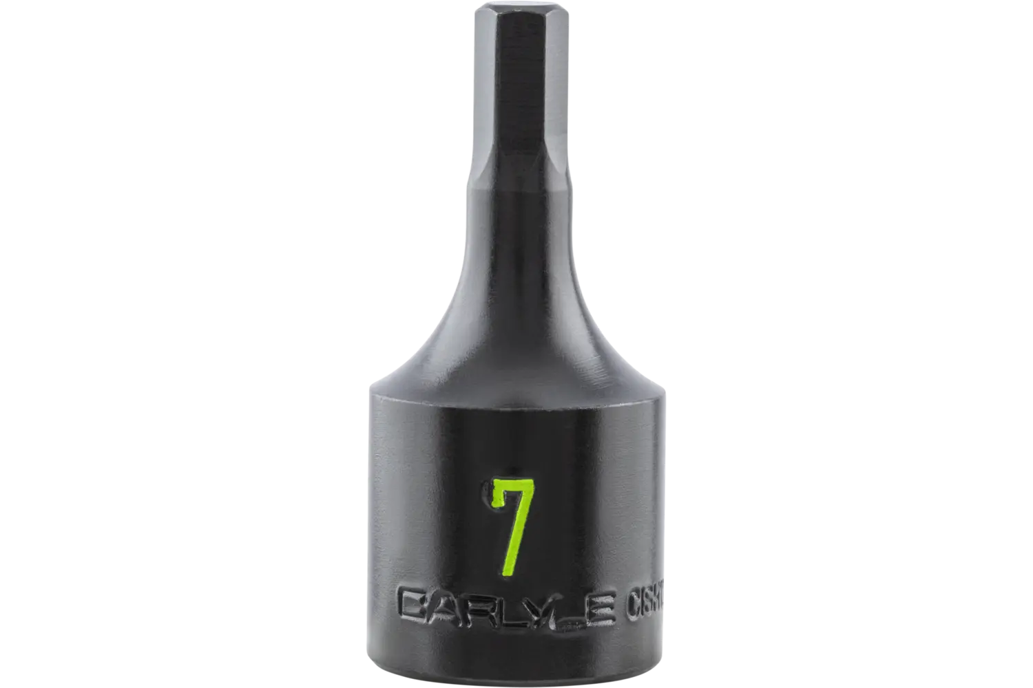 The Carlyle 1/2 in. Drive Standard Depth Hex Bit Impact Socket - Metric is built to handle the toughest jobs with precision and durability. Designed with a radius corner on the working end, it grips fasteners more effectively, reducing wear and tear. The chamfered drive opening allows for a smooth and secure connection between the socket and your drive tool, making every job more efficient. Crafted from Chrome Molybdenum Alloy Steel, this socket delivers unmatched strength and durability, while the black phosphate finish fights off corrosion for long-lasting performance. Perfect for use with impact power or air tools, it's available in a wide variety of sizes to tackle any project with confidence and style.