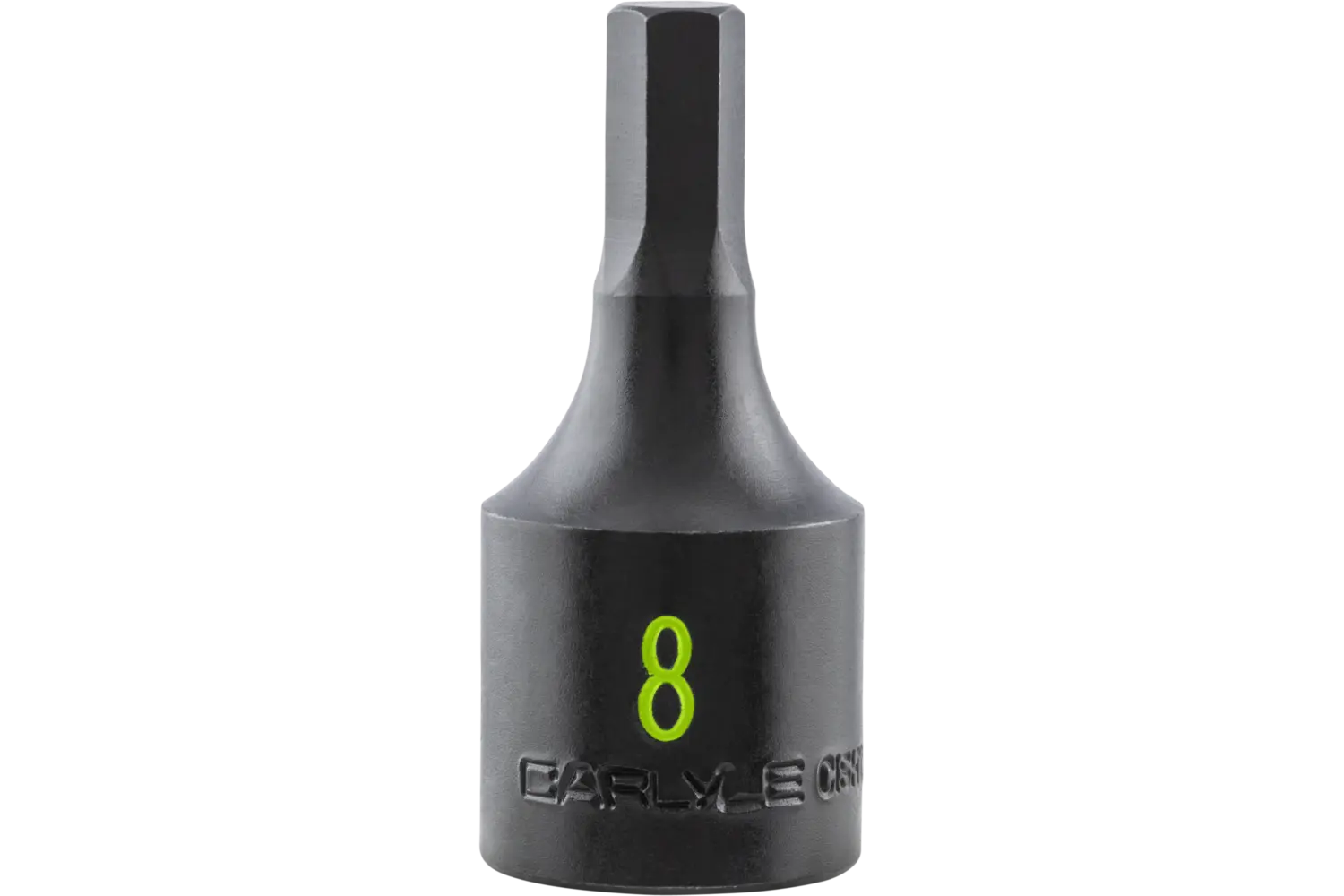 The Carlyle 1/2 in. Drive Standard Depth Hex Bit Impact Socket - Metric is built to handle the toughest jobs with precision and durability. Designed with a radius corner on the working end, it grips fasteners more effectively, reducing wear and tear. The chamfered drive opening allows for a smooth and secure connection between the socket and your drive tool, making every job more efficient. Crafted from Chrome Molybdenum Alloy Steel, this socket delivers unmatched strength and durability, while the black phosphate finish fights off corrosion for long-lasting performance. Perfect for use with impact power or air tools, it's available in a wide variety of sizes to tackle any project with confidence and style.