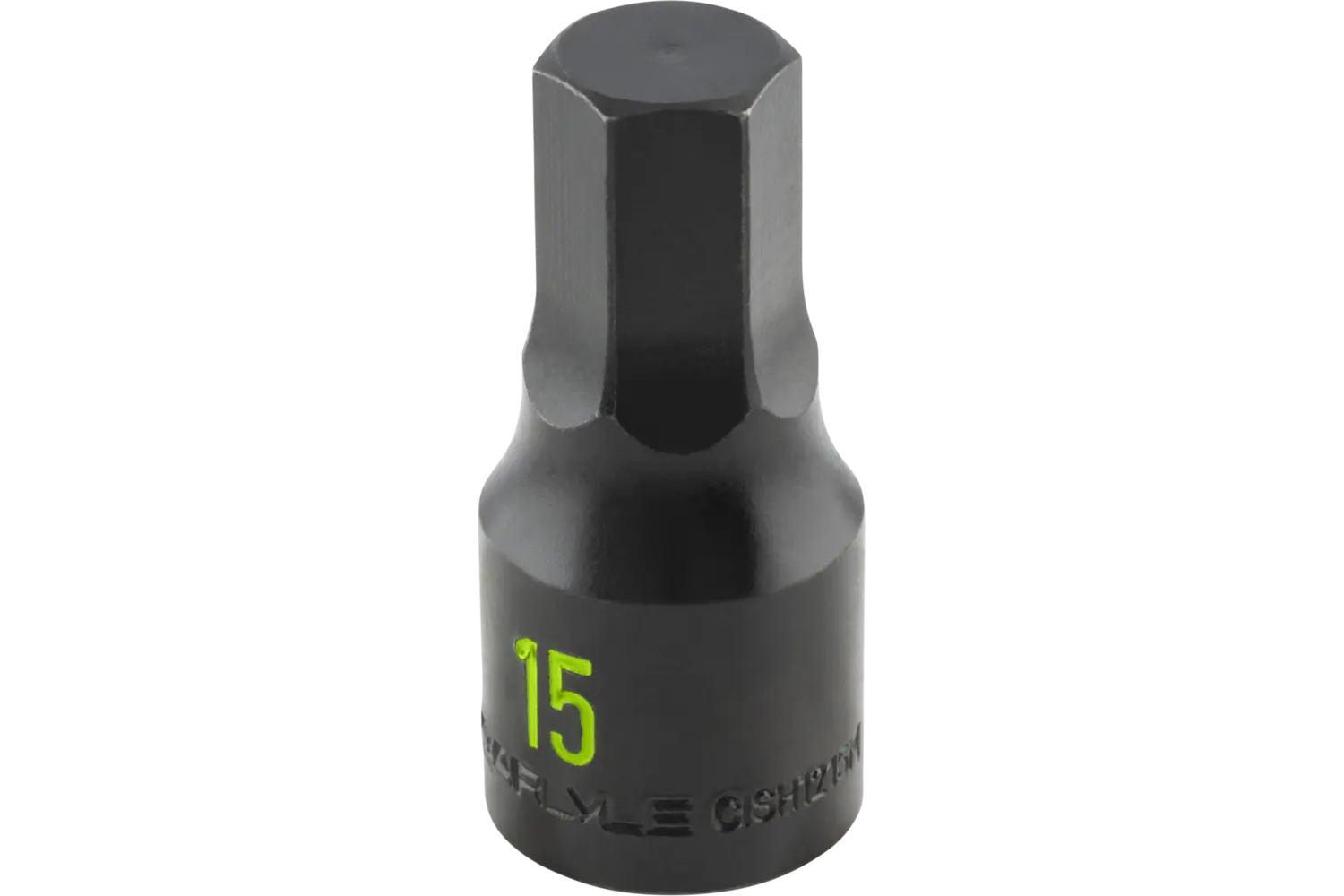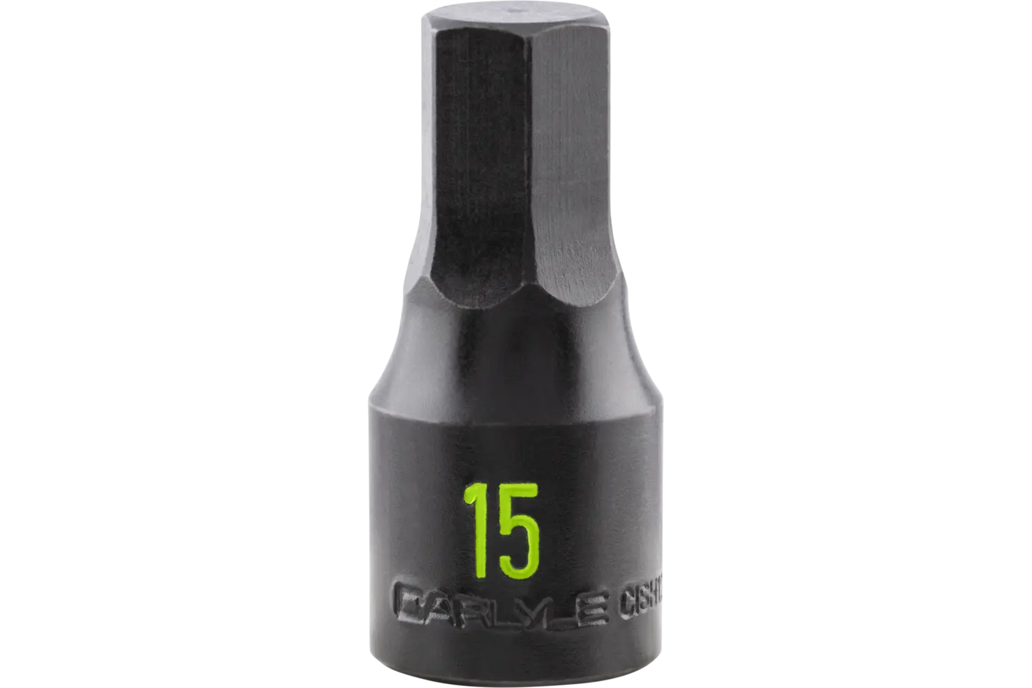 The Carlyle 1/2 in. Drive Standard Depth Hex Bit Impact Socket - Metric is built to handle the toughest jobs with precision and durability. Designed with a radius corner on the working end, it grips fasteners more effectively, reducing wear and tear. The chamfered drive opening allows for a smooth and secure connection between the socket and your drive tool, making every job more efficient. Crafted from Chrome Molybdenum Alloy Steel, this socket delivers unmatched strength and durability, while the black phosphate finish fights off corrosion for long-lasting performance. Perfect for use with impact power or air tools, it's available in a wide variety of sizes to tackle any project with confidence and style.