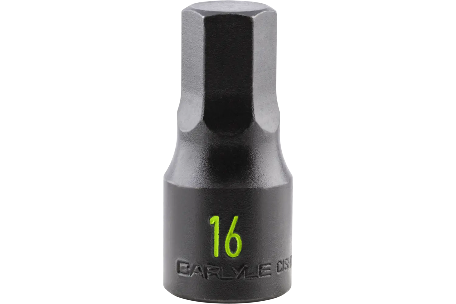 The Carlyle 1/2 in. Drive Standard Depth Hex Bit Impact Socket - Metric is built to handle the toughest jobs with precision and durability. Designed with a radius corner on the working end, it grips fasteners more effectively, reducing wear and tear. The chamfered drive opening allows for a smooth and secure connection between the socket and your drive tool, making every job more efficient. Crafted from Chrome Molybdenum Alloy Steel, this socket delivers unmatched strength and durability, while the black phosphate finish fights off corrosion for long-lasting performance. Perfect for use with impact power or air tools, it's available in a wide variety of sizes to tackle any project with confidence and style.