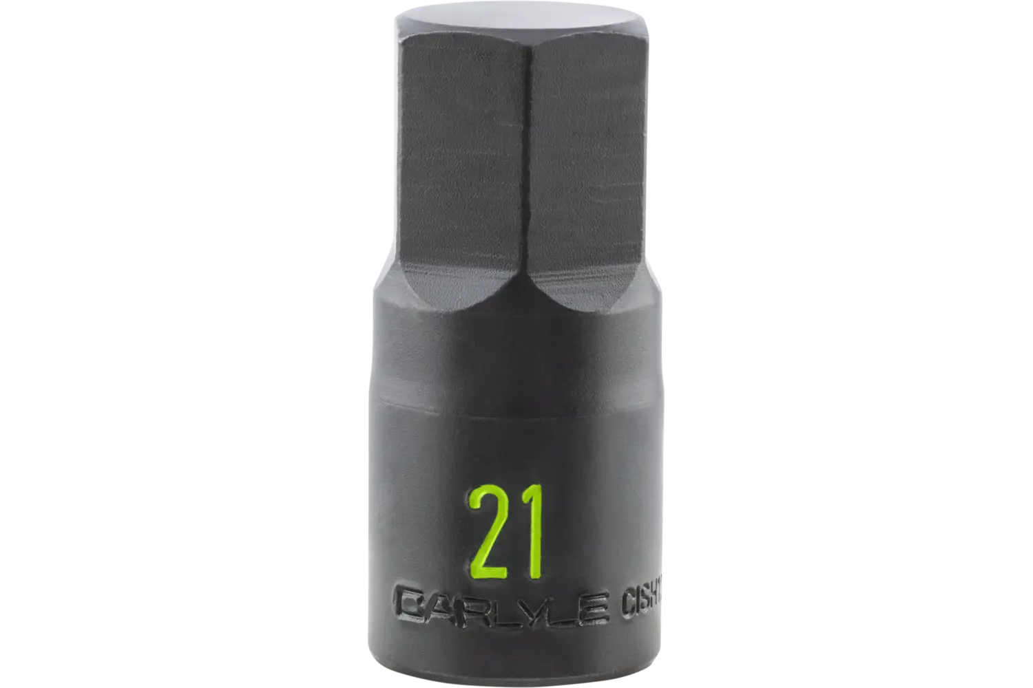 The Carlyle 1/2 in. Drive Standard Depth Hex Bit Impact Socket - Metric is built to handle the toughest jobs with precision and durability. Designed with a radius corner on the working end, it grips fasteners more effectively, reducing wear and tear. The chamfered drive opening allows for a smooth and secure connection between the socket and your drive tool, making every job more efficient. Crafted from Chrome Molybdenum Alloy Steel, this socket delivers unmatched strength and durability, while the black phosphate finish fights off corrosion for long-lasting performance. Perfect for use with impact power or air tools, it's available in a wide variety of sizes to tackle any project with confidence and style.